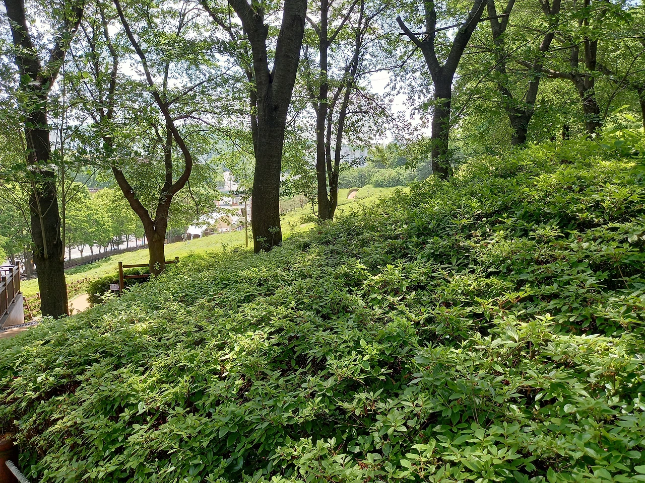 수리산역에서 오전 11시에 만나 철쭉동산과 초막골생태공원 지나 수리산을 오르기 시작한다. 꽃이 다 진 철쭉동산이 꼭 보성 녹차밭 같다.