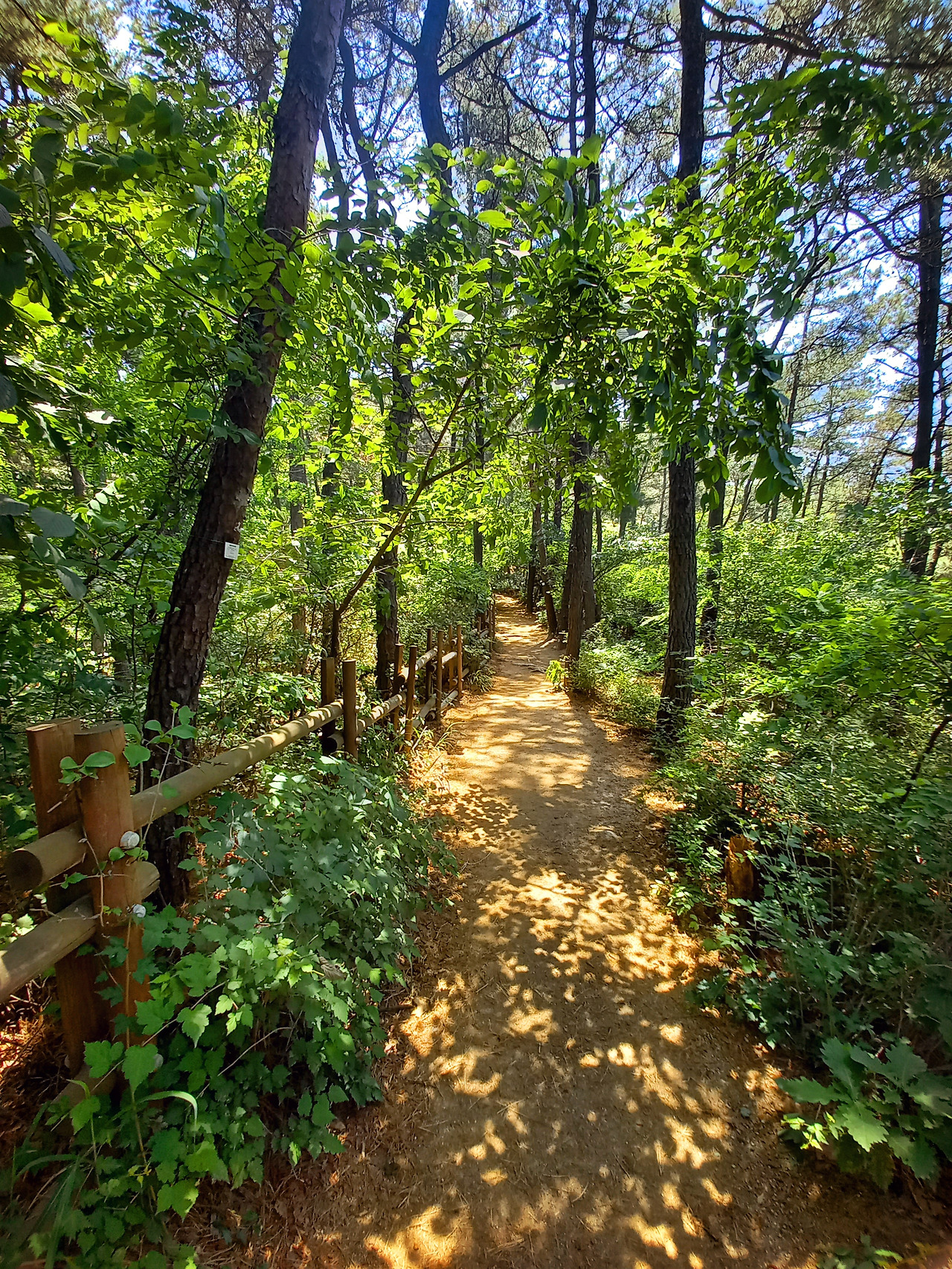 칠보산은 아주 평탄하여 누구나 걷기 좋은 길이고, 숲이 우거진 데다 바람이 시원하게 불어 참 좋다. 날씨가 더워도 산에 오면 진짜 천국이다. 이렇게 시원할 수가 없다! 바람에 나뭇잎 흔들리는 소리가 내려가지 말고 더 오래 쉬었다 가라고 날 붙잡는 것 같다.