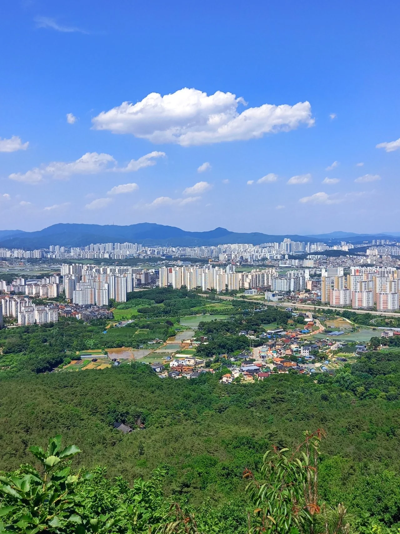전망대에서 오른쪽부터 왼쪽으로 팔달산, 숙지산, 여기산, 광교산, 백운산, 청계산, 모락산을 한눈에 조망해 본다. 멀리서 보면 산봉우리가 고만고만해 보이는데, 실제로 산을 올라 보면 꽤나 높다.