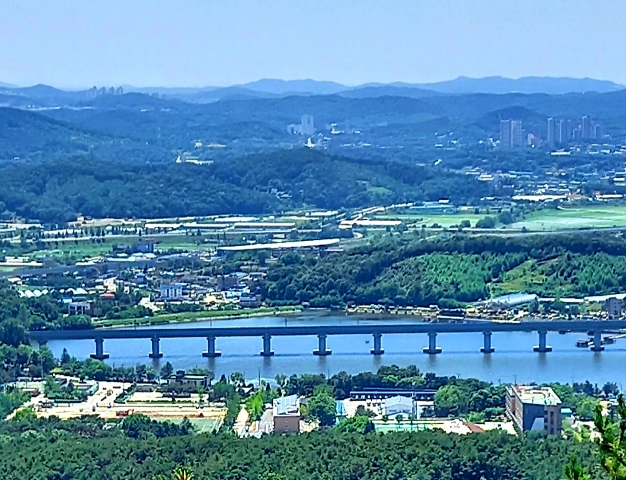 칠보산은 전망대와 정자, 암릉 조망터가 많다. 하산길 오른쪽은 의왕과 화성 쪽, 왼쪽은 수원 쪽이다. 아파트와 산과 강이 그림같이 펼쳐진다.