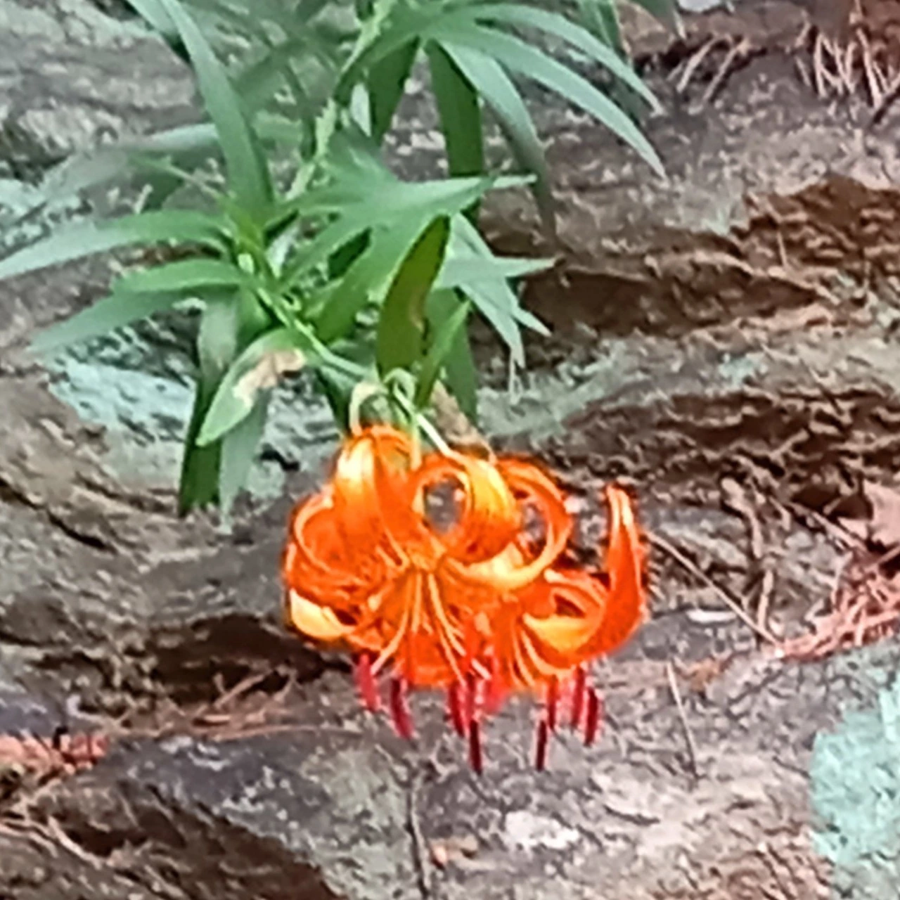 다시 도로길, 바위 위에 곱게 핀 땅나리꽃을 올 들어 처음 만난다.