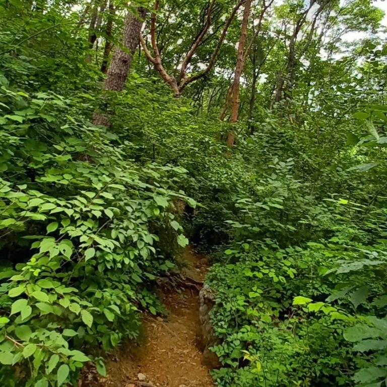 "3개월 만이네. 3월 초에는 새싹을 찾으면서 산행했는데 그새 초록이 무성해졌어. 엄청 시원해서 좋아."