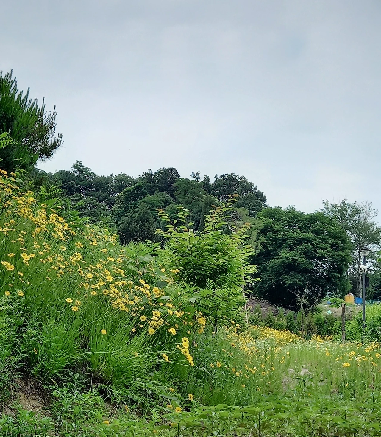 참, 분홍꽃이 예쁘다. 꼭 아카시아꽃을 닮았는데 색이 분홍이라 검색을 해보니 땅비싸리 꽃이다. 하얀 개망초꽃, 노란 금계국 담고, 너무나 예쁜 아치형 초록 숲길을 걷는다. 행복한 시간이다.