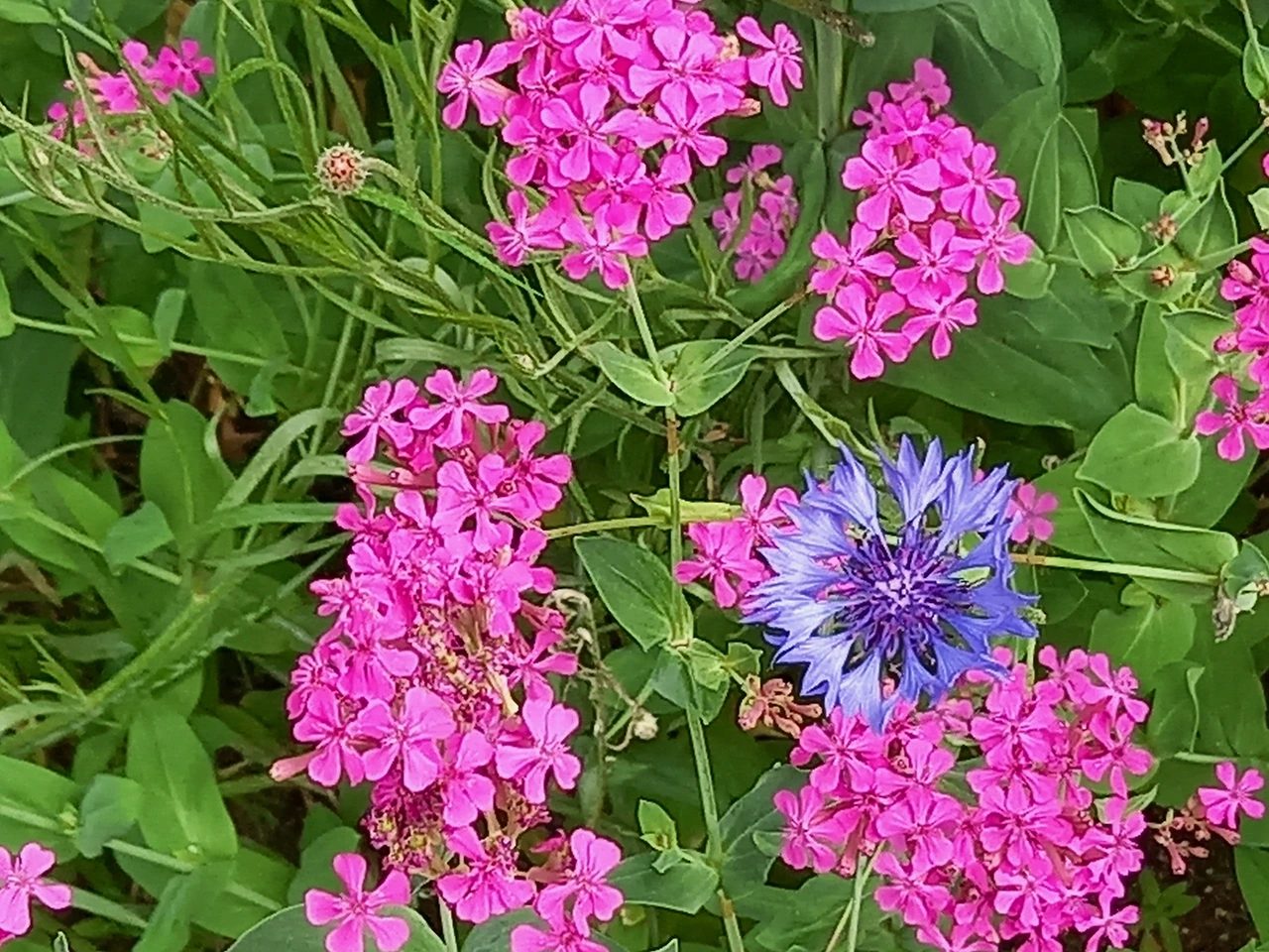 하산하면서 꽃들과 하얀 나비와 만난다. 흐드러지게 핀 향기가 진한 밤꽃, 노오란 금계국 꽃밭, 보랏빛 수레국화, 진분홍 끈끈이대나물, 줄무늬 프렌치메리골드, 조팝나무꽃, 노란 달맞이꽃, 마삭줄, 이름을 불러주지만 아직 이름 모르는 꽃들이 제법 있다.