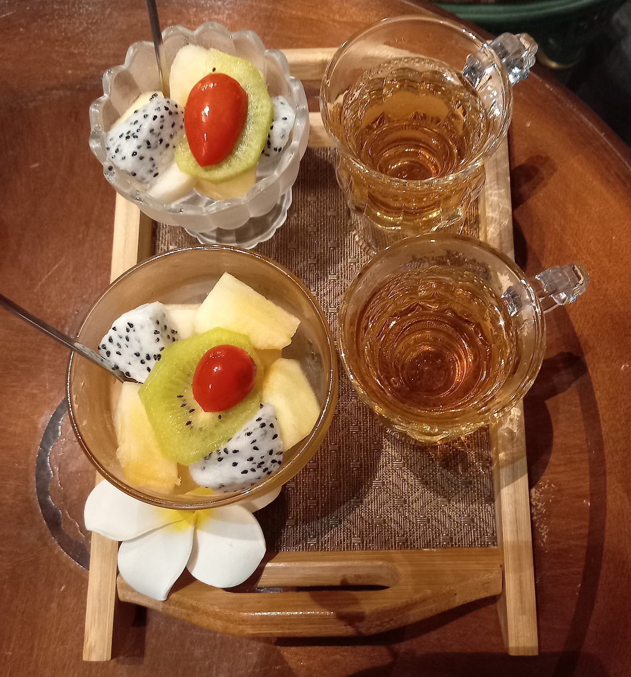 1시간 마사지가 다 끝나니 과일과 차를 준다. 울 딸이 배부르다고 안 먹어서 내가 다 먹는다.