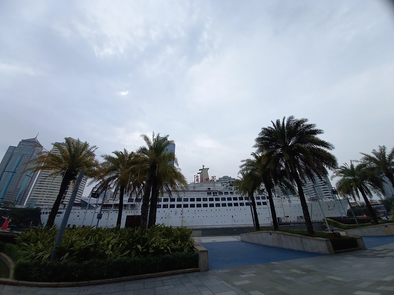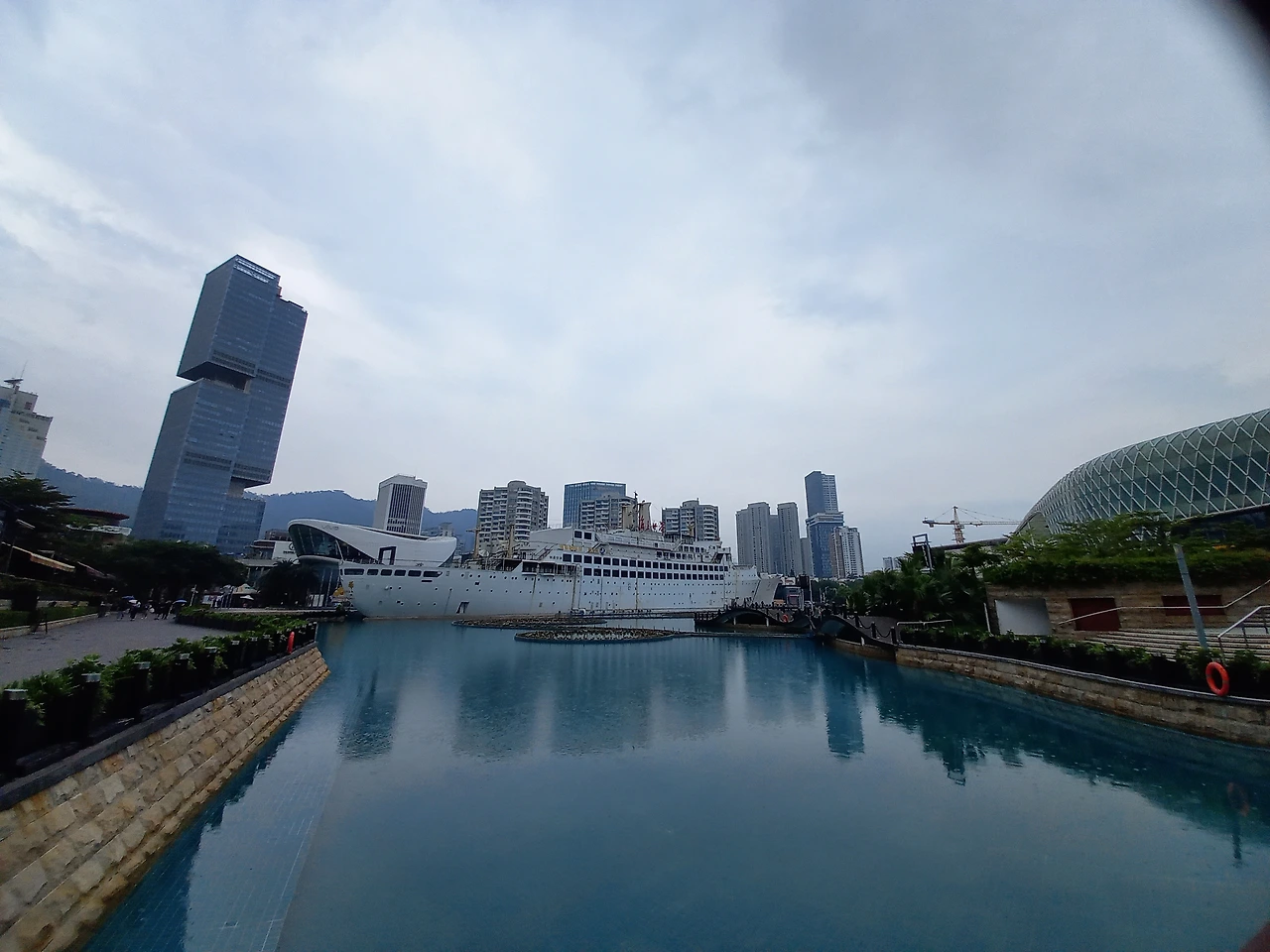 울 딸이 《해상세계》 건물 뱃머리 부분을 돌아간다. 예쁜 작은 연못이 나온다.