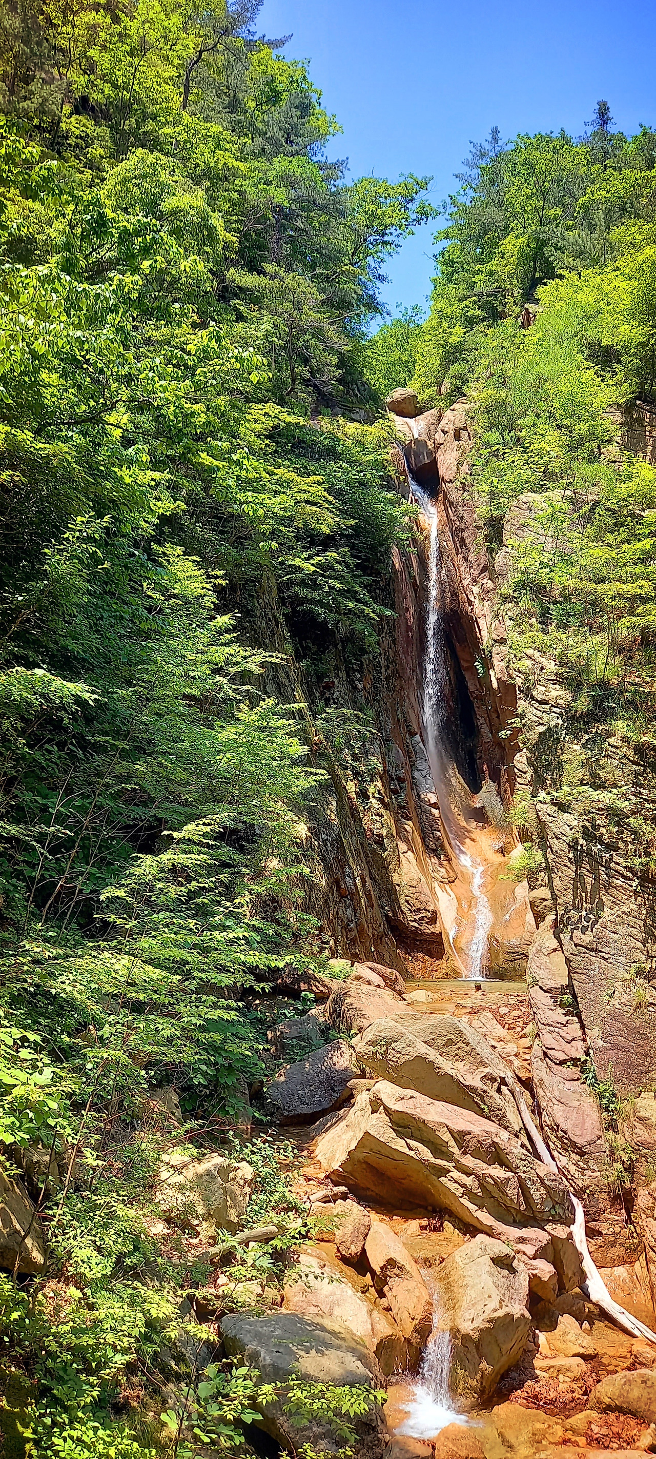어디까지가 흘림골이고 어디까지가 주전골인가 조금 헷갈렸는데 함산 한 산우님들이 한 달 전에 주전골만 왔다 갔단다. 용소폭포까지 걸었다면서 오늘은 거길 안 들르고 그냥 내려간단다. 나도 함께 했기에 용소폭포에 들르지 않고 따라서 내려온다. 흘림골뿐 아니라 주전골은 폭포산행이라고 해도 될 만큼 폭포가 많다. 또 나도 지난번에 왔을 때 용소폭포를 둘러보았다.