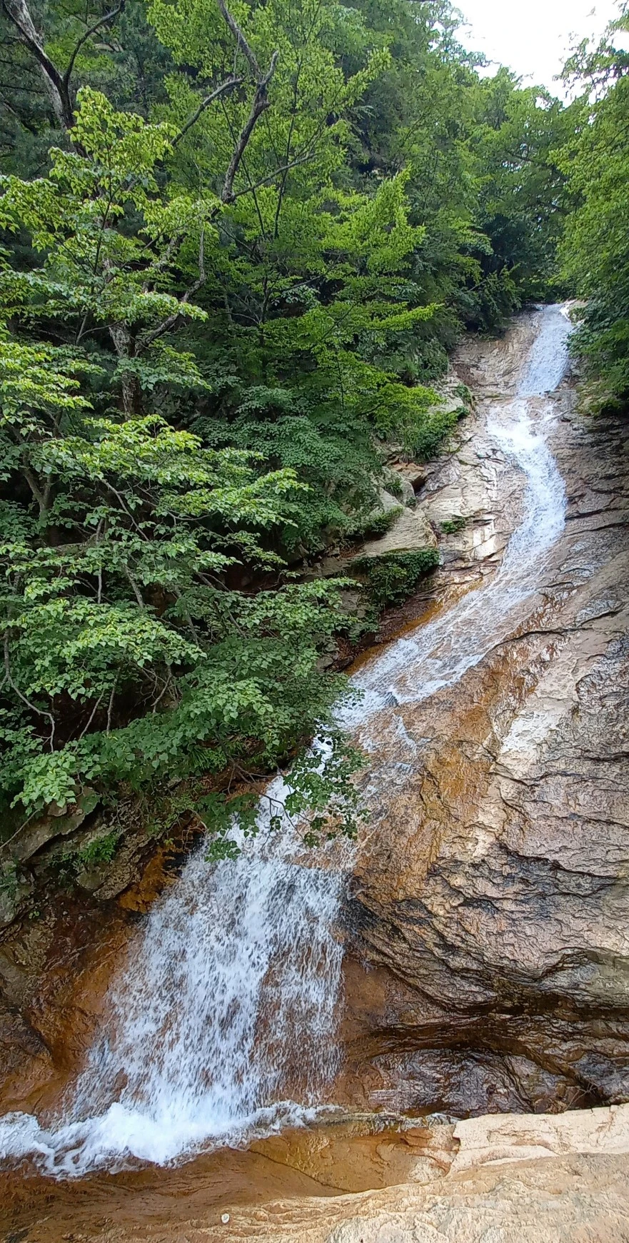이전에 왔을 때 살짝 들어가 보니 폭포 밑에 바위가 아주 미끄럽다. 폭포가 조금 완만하게 경사가 져 있는데 잘 모르고 물속으로 들어갔다가 사고가 날 수도 있어서 출입금지 표시를 해놓은 것 같다. 산행에서 해놓은 경고 및 금지 표시는 잘 지키는 게 안전을 위해서 좋다.