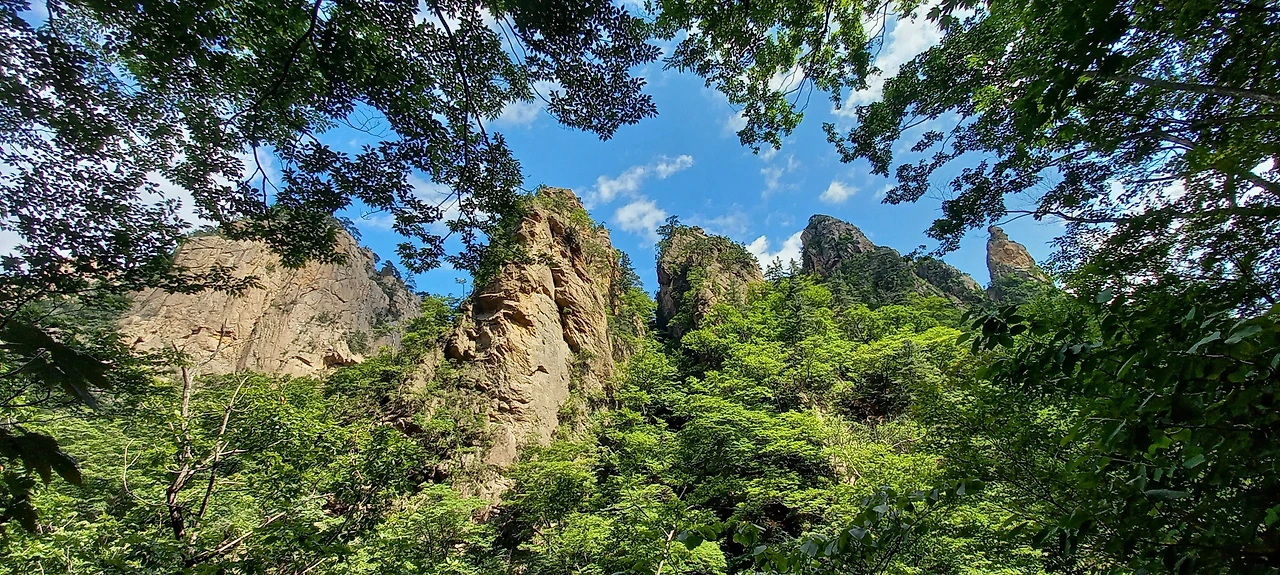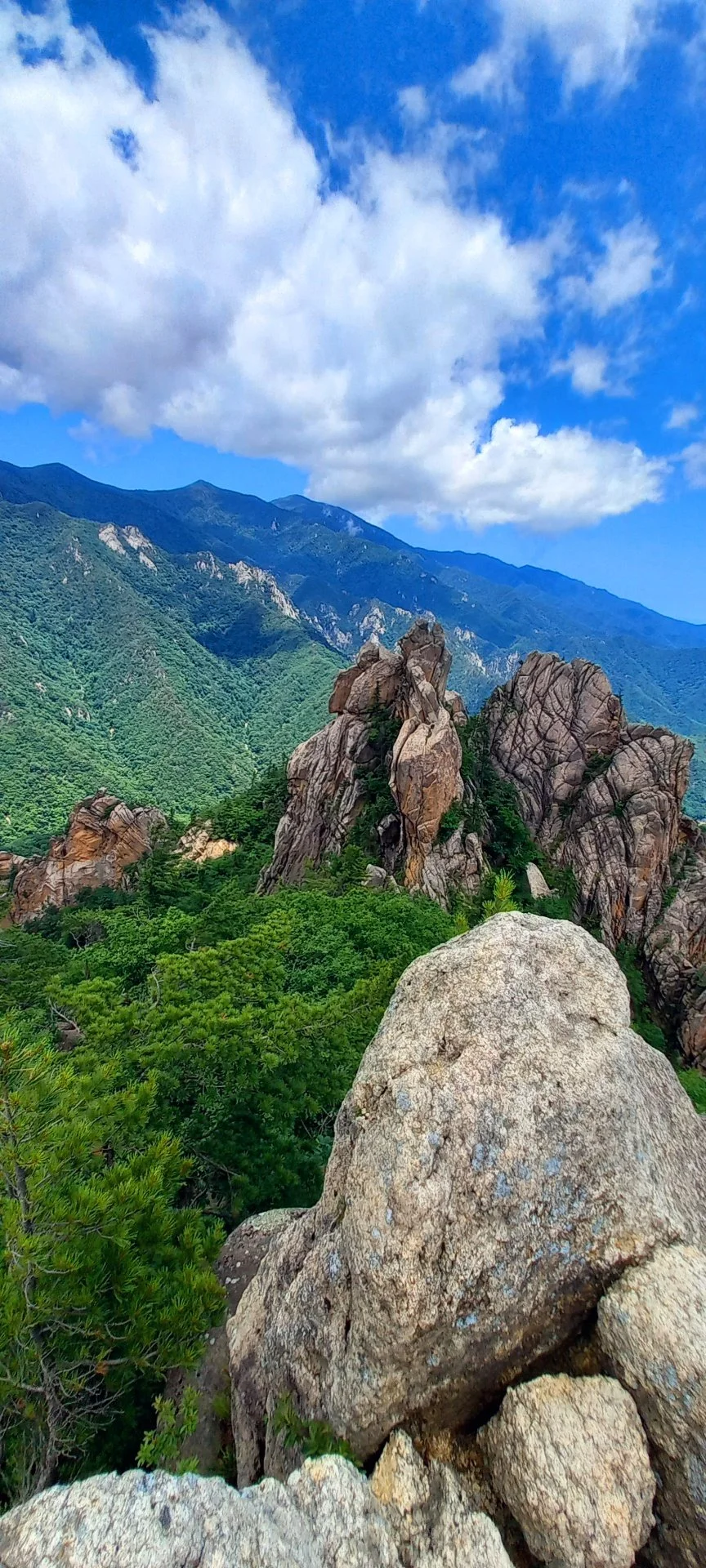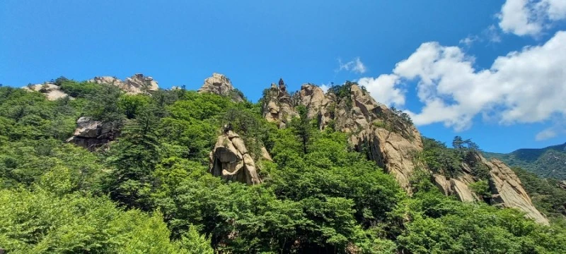 등선대 전망대에서도 점봉산 쪽도 보이고 기암괴석 조각품들이 자태를 뽐내며 우람하게 서 있다. 설악산의 모습을 제대로 볼 수 있는 산행이 바로 흘림골 코스이다.