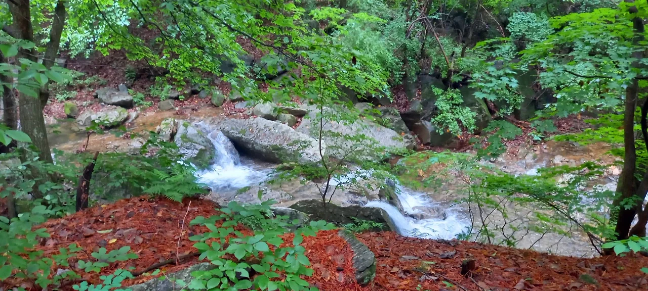 마당 바위 아래 계곡에서 물놀이를 하고 지난번 내가 내려온 길로 그대로 내려온다. 3주 전인 데도 그때와는 다르게 초록이 더욱 짙어졌다.