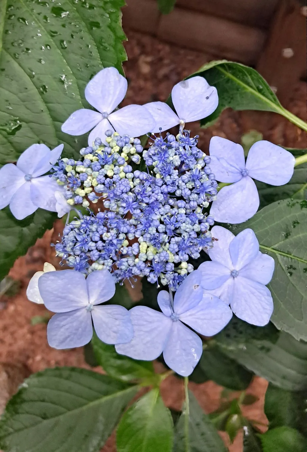 그래도 밤새 내린 비로 인해 빗방울을 머금고 있는 꽃들과 나무 숲 초록이들이 반겨주어 싱그러운 산행을 한다. 옛골 지나면서는 카페 앞에 예쁜 꽃들, 산길에서는 청초한 개망초꽃, 수국 보는 맛으로 산행이 그저 즐겁기만 하다.