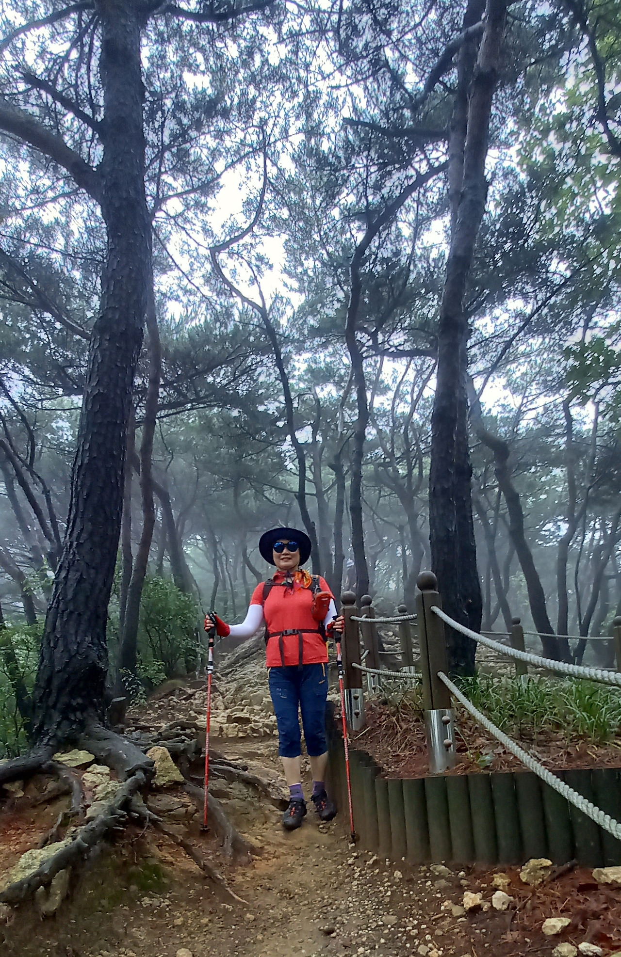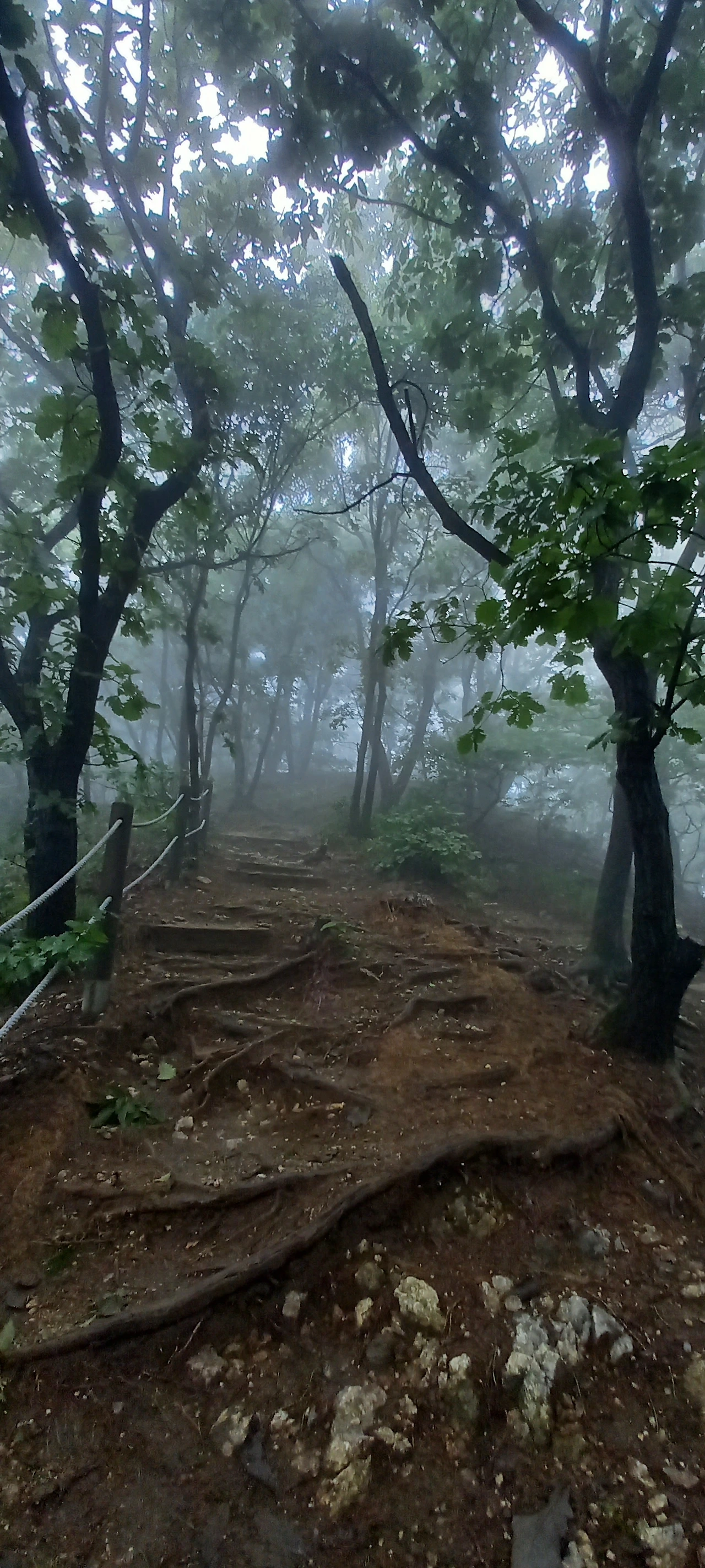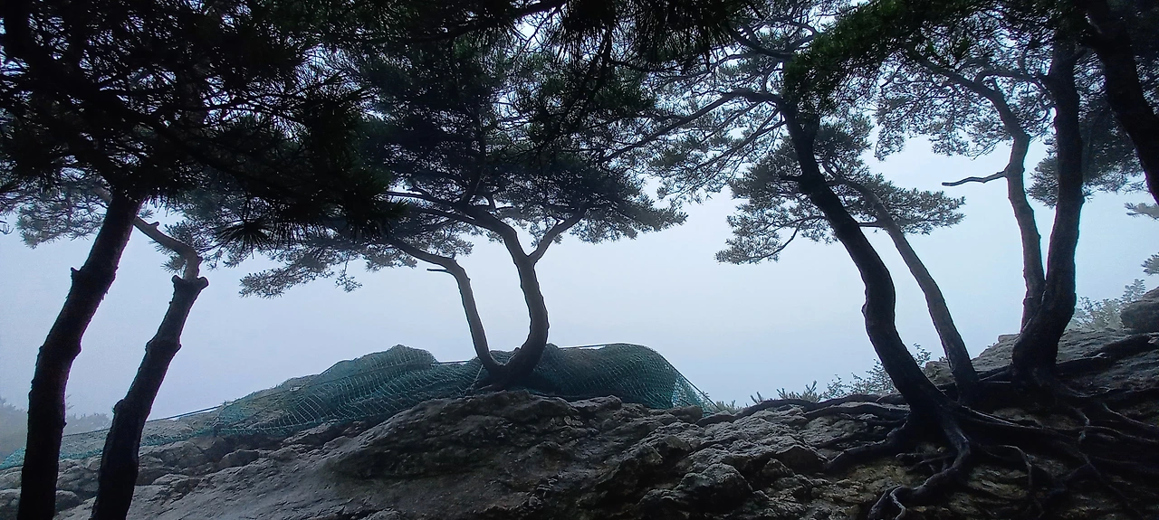 운무가 점점 짙어져 산을 온통 덮어버린다. 한 치 앞을 보기가 어렵다. 운무 속에 멋진 나무들이 더욱 신비스러운 자태를 뽐낸다.