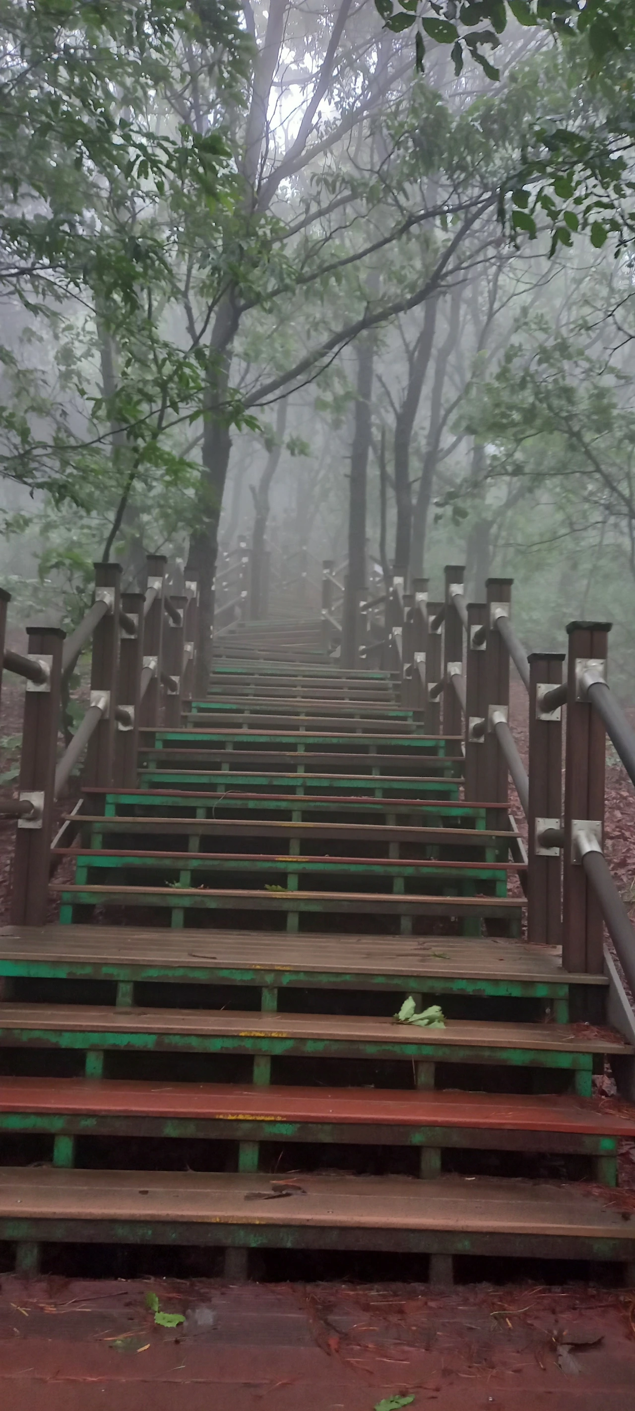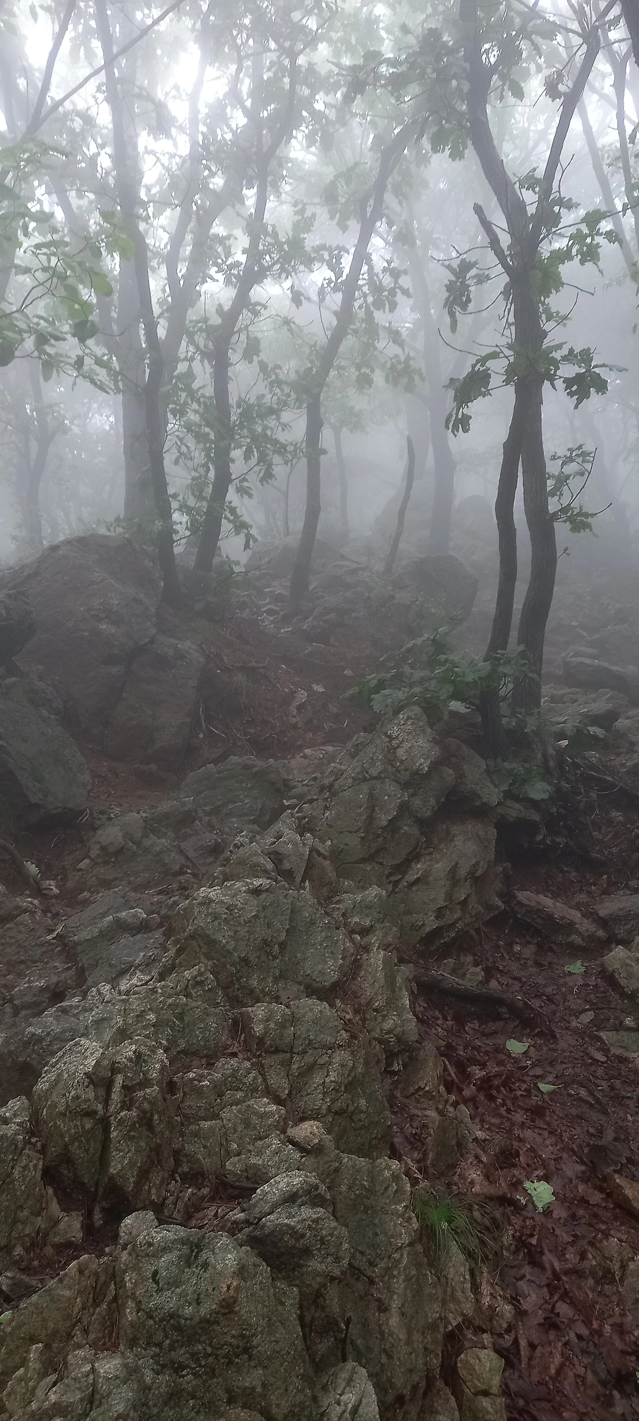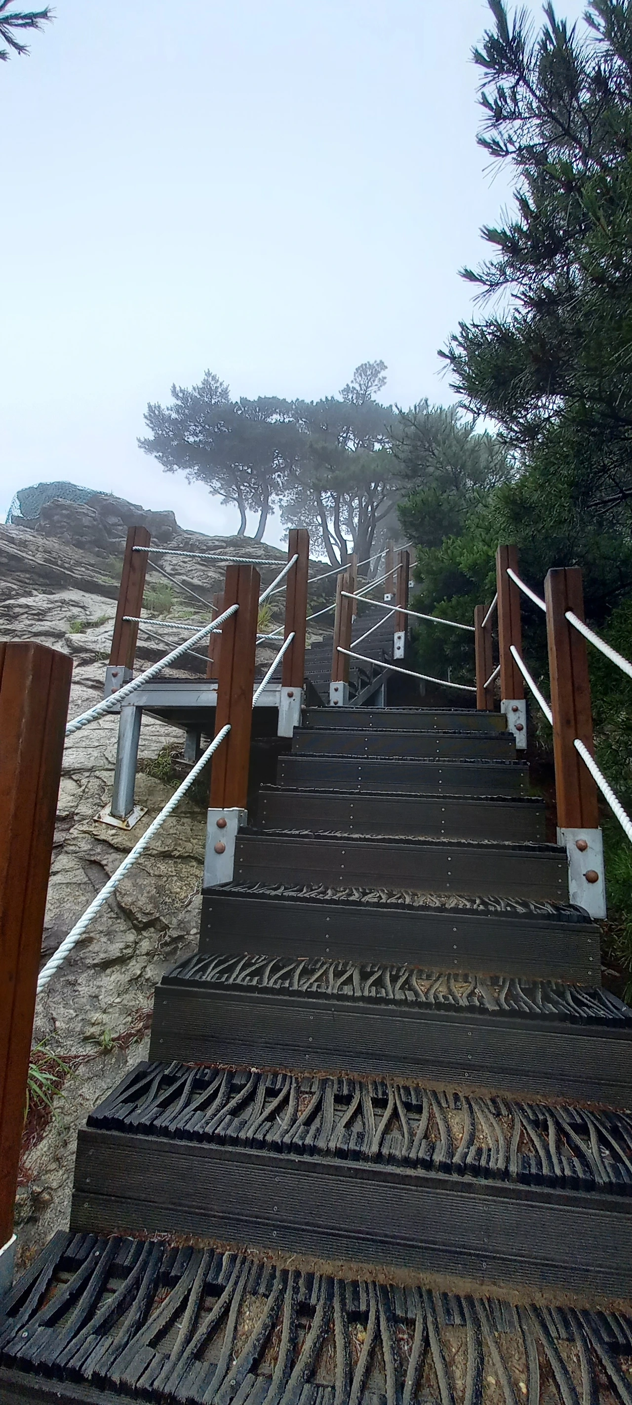 운무가 점점 짙어져 산을 온통 덮어버린다. 한 치 앞을 보기가 어렵다. 운무 속에 멋진 나무들이 더욱 신비스러운 자태를 뽐낸다.