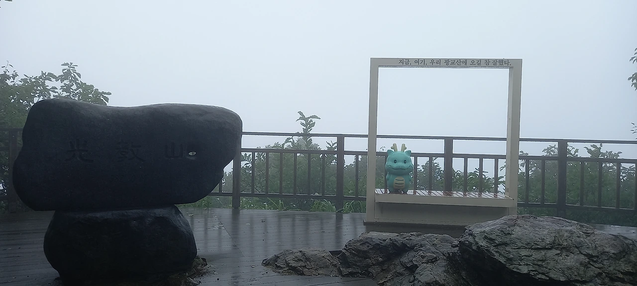 너덜지대 지나 곧 형제봉 바로 아래 데크길에 선다. 형제봉 오르는 데크길과 암릉 위에서는 조망이 아주 좋은데, 운무가 끼여서 아무것도 안 보인다. 저기가 아파트가 보이는 지점이겠구나, 상상을 하며 뽀얀 운무 바다를 내려다본다.
