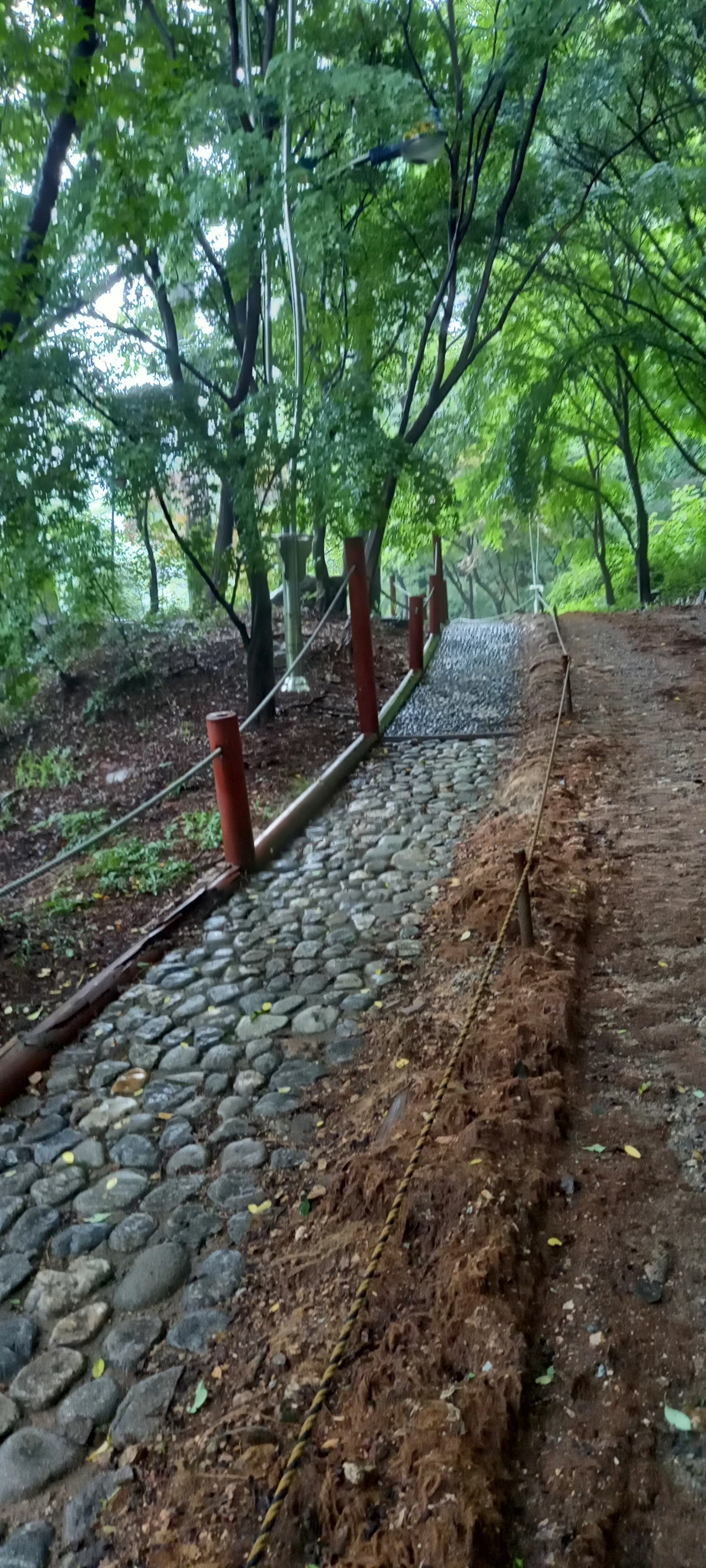 "네. 비에 흙이 씻겨서 미끄럽지 않고 좋아요."
