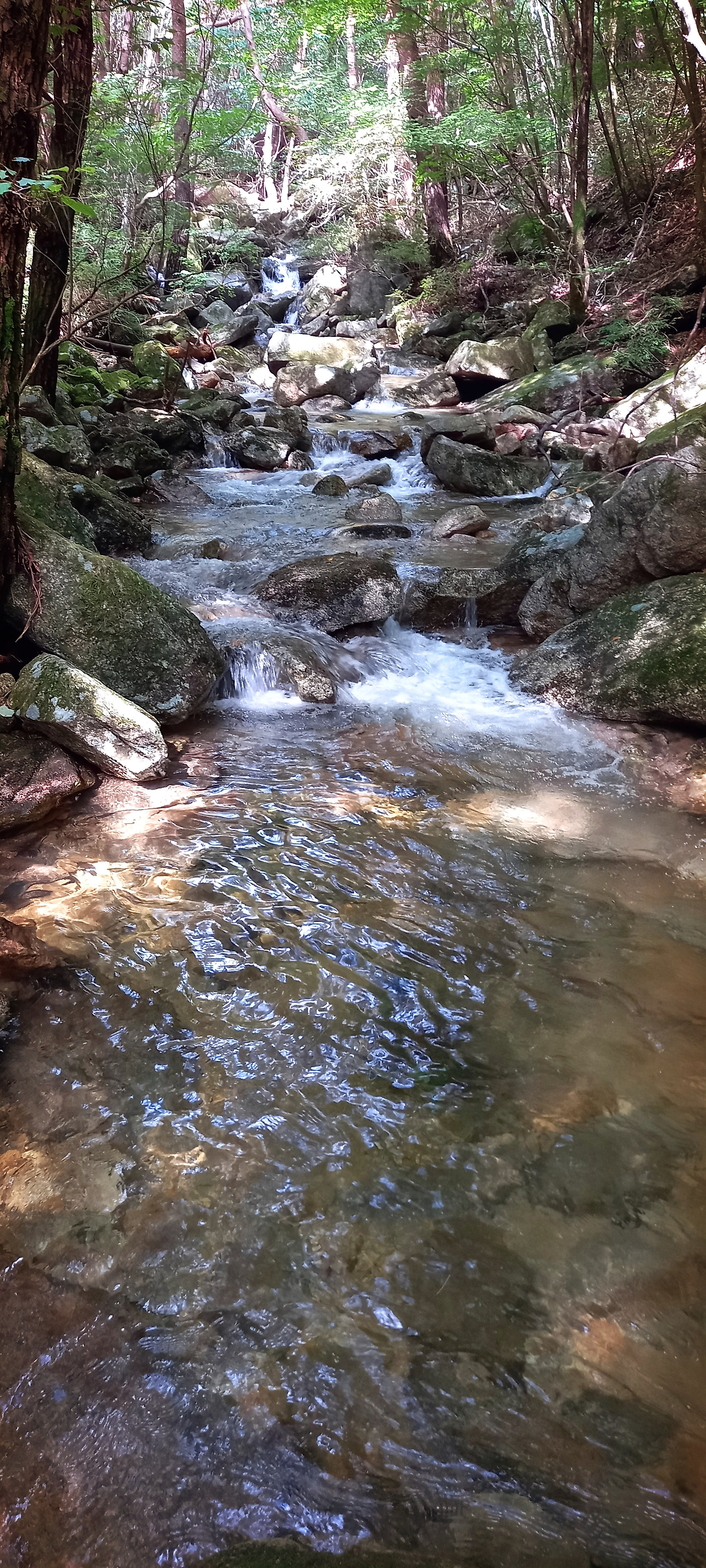 비는 금방 그쳐서 다시 우비를 벗어 배낭에 넣는다. 계곡이 나타나면서 시원한 물소리와 함께 걷는다. 상쾌하다.