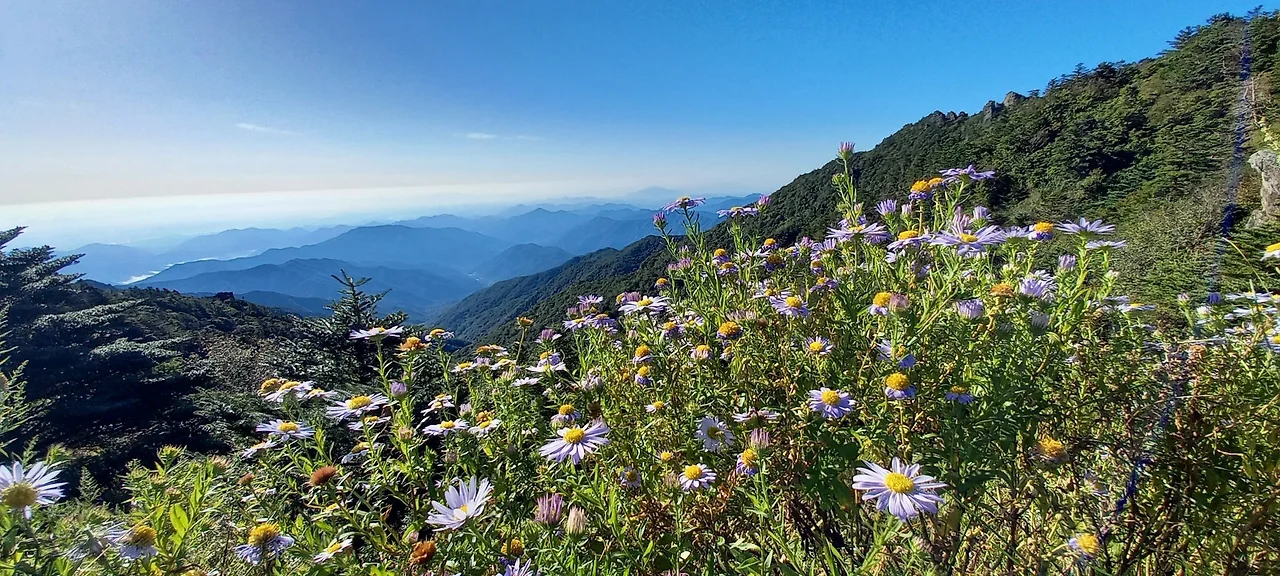 지리산에는 야생화가 지천이다. 투구꽃, 구절초, 쑥부쟁이, 용담 등 예쁜 꽃들을 담는다. 같은 보라색이라도 꽃 모양과 잎 모양에 따라 꽃 종류가 다르다.