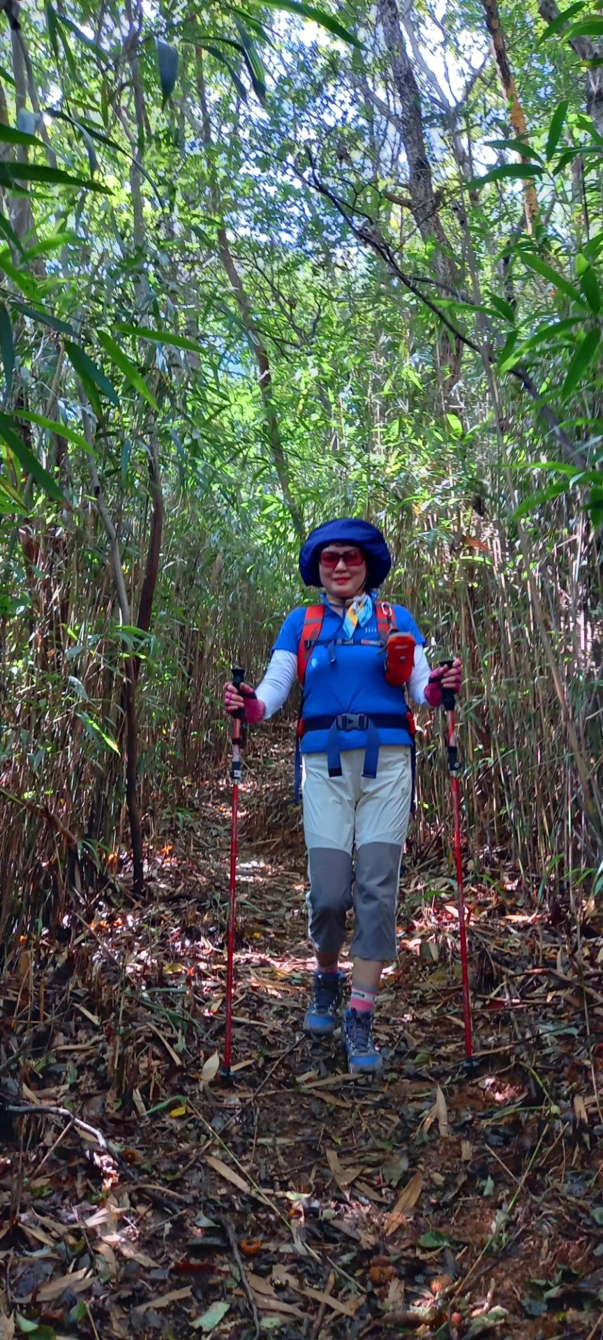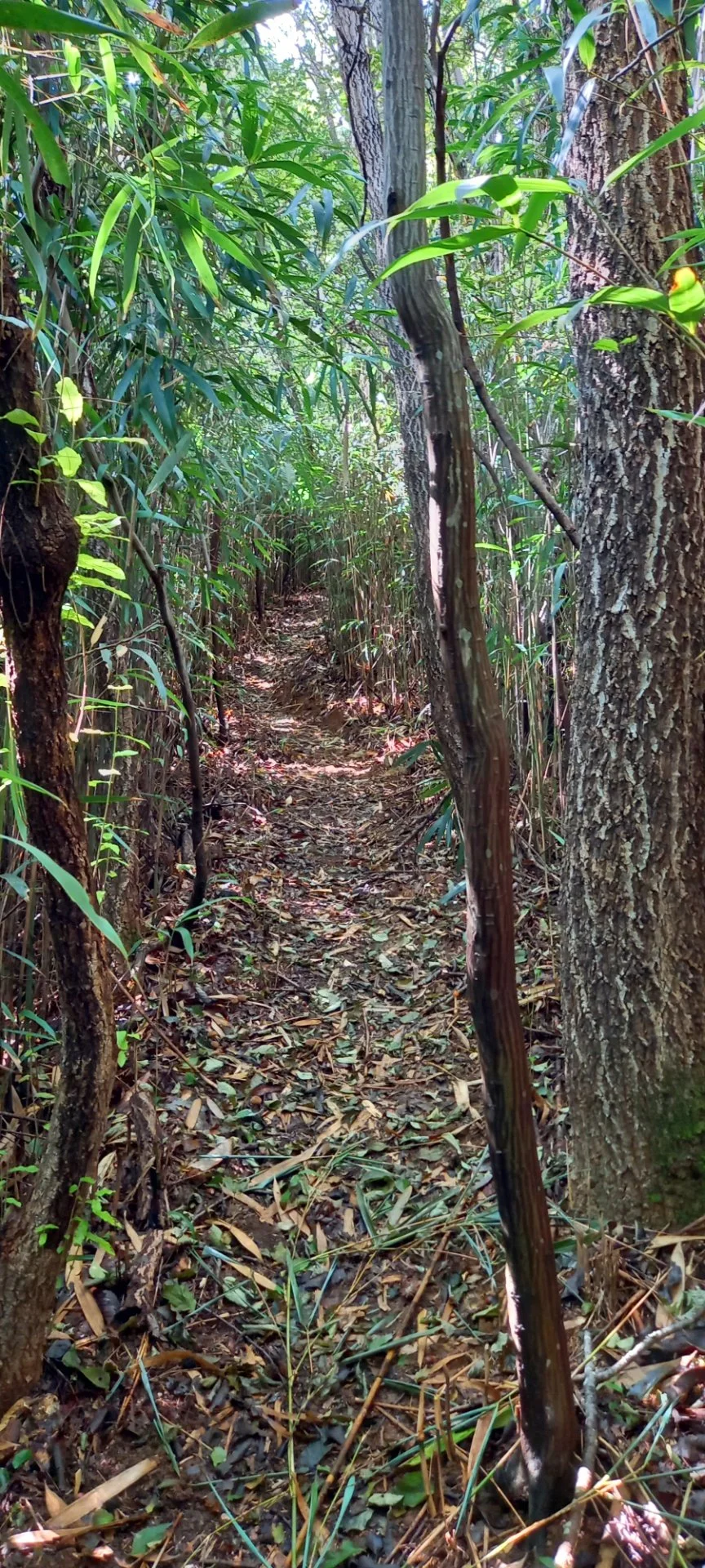 남산우 님이 백련사 가기 전에 B코스를 조금 변경해서 간다. 우리는 그저 따라가는데 대숲길이 엄청 분위기가 있다. 한참 이어지는데 하늘도 안 보이는 울창한 대숲길이다.