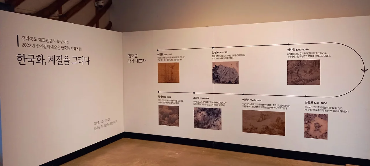한국화 코너에는 겸재 정선과 단원 김홍도의 수묵화 그림이 전시되어 있다. 한국화의 계보도 읽어보고 우리나라의 사계 그림을 감상한다. 산세와 나무, 바위, 폭포, 운무가 조화를 이룬, 기개가 넘치는 작품들이다. 요즘 나도 문인화 그리기에 심취해 있어서 공감하는 바가 크다.