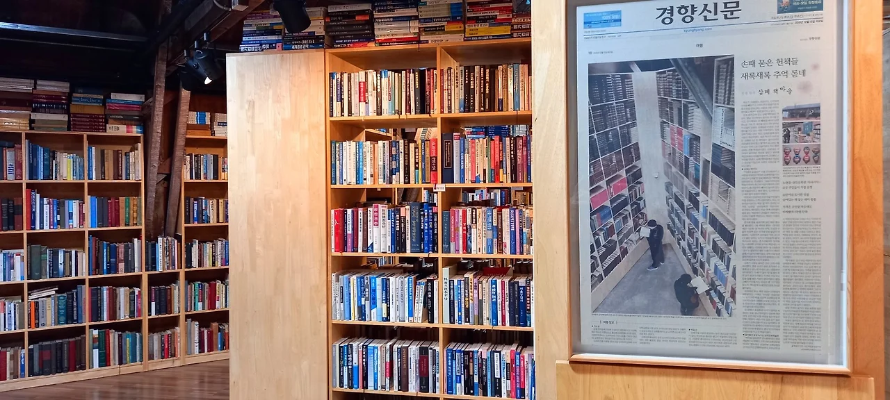 건너편 삼례책마을로 간다. 오래된 책을 파는데, 내가 배웠던 국민학교 1학년 교과서도 판다. 한 권을 살까 했는데 값이 15,000원이어서 안 사고 둘러본다. 북카페는 1층, 2층이 있고 전시실도 있다. 여기저기 신문에 기사가 난 것을 스크랩해서 벽에 걸어둔 곳도 있다.