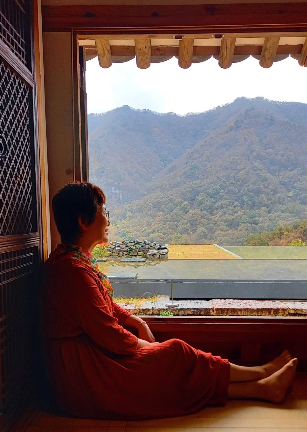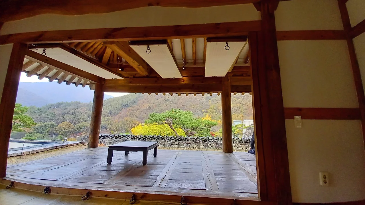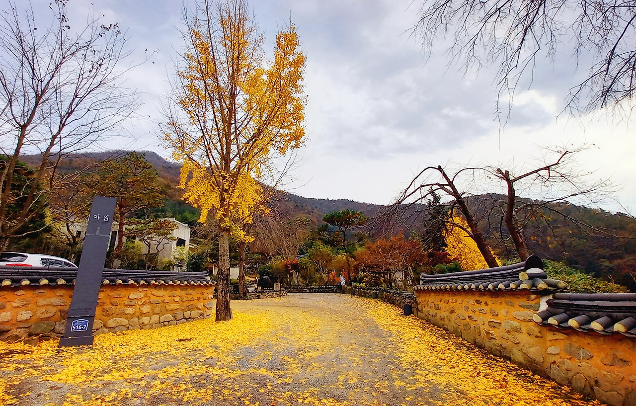 여기서는 시간이 많이 남아서 아원고택 만휴당 안 마루에도 방에도 들어가서 쉰다. '만휴당'은 '만사를 제쳐두고 쉬어가는 곳'이라는 뜻을 가졌단다. 방과 마루에서 보는 풍경은 바깥에서 보는 것과는 사뭇 다르다. 휘어진 나무가 한 폭의 액자 속 그림처럼 나타난다. 주변 종남산도 장독대도 고즈넉하게 바라다 보인다. 이런 곳에서 살면 만년 청년처럼 살 수도 있겠다 싶어 진다.