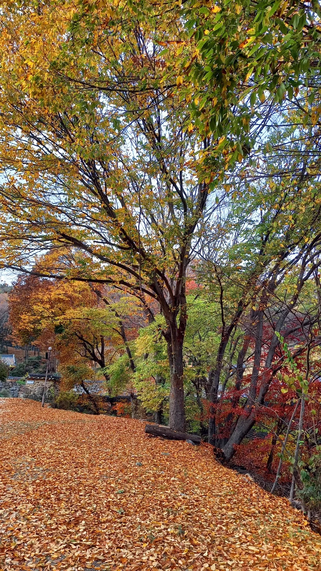 위봉사로 이동했는데 나는 절은 잘 안 봐서 주변 산책길을 걸으며 단풍을 담는다. 수북이 낙엽 떨어진 길도 여기저기 고운 단풍도 계절을 모르고 피어난 꽃들도 예쁘다.