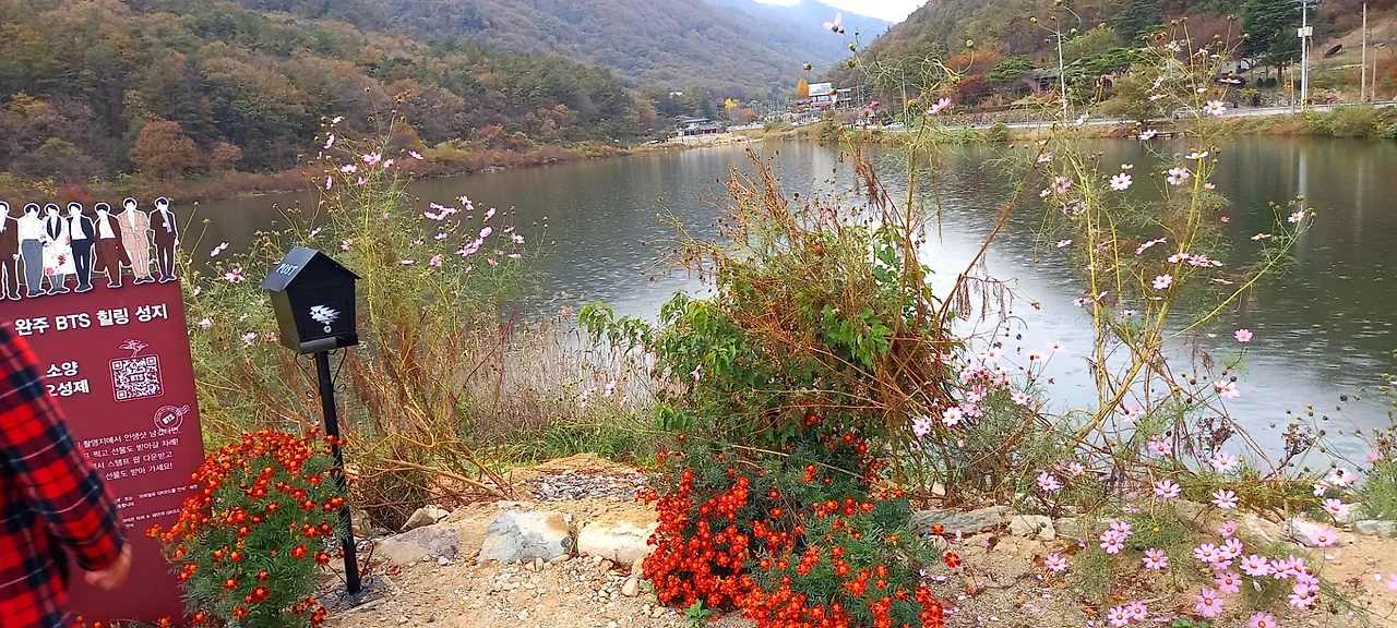 완주 오성제는 작은 저수지인데 BTS가 다녀간 곳이라서 유명해졌단다. '오성제'라는 이름은 '5명의 성인이 태어날 장소'라는 뜻을 지녔단다. 세계적인 K팝 스타 BTS가 다녀갔으니 이름값을 한 것인지도 모르겠다.