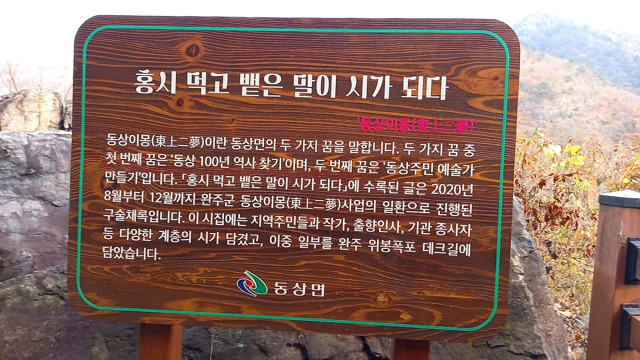 데크길을 따라 목판에 기록된 시가 전시되어 있다. 내려갈 때는 그냥 내려가고 올라올 때 하나하나 읽어본다. 재미난 것들이 많다.
