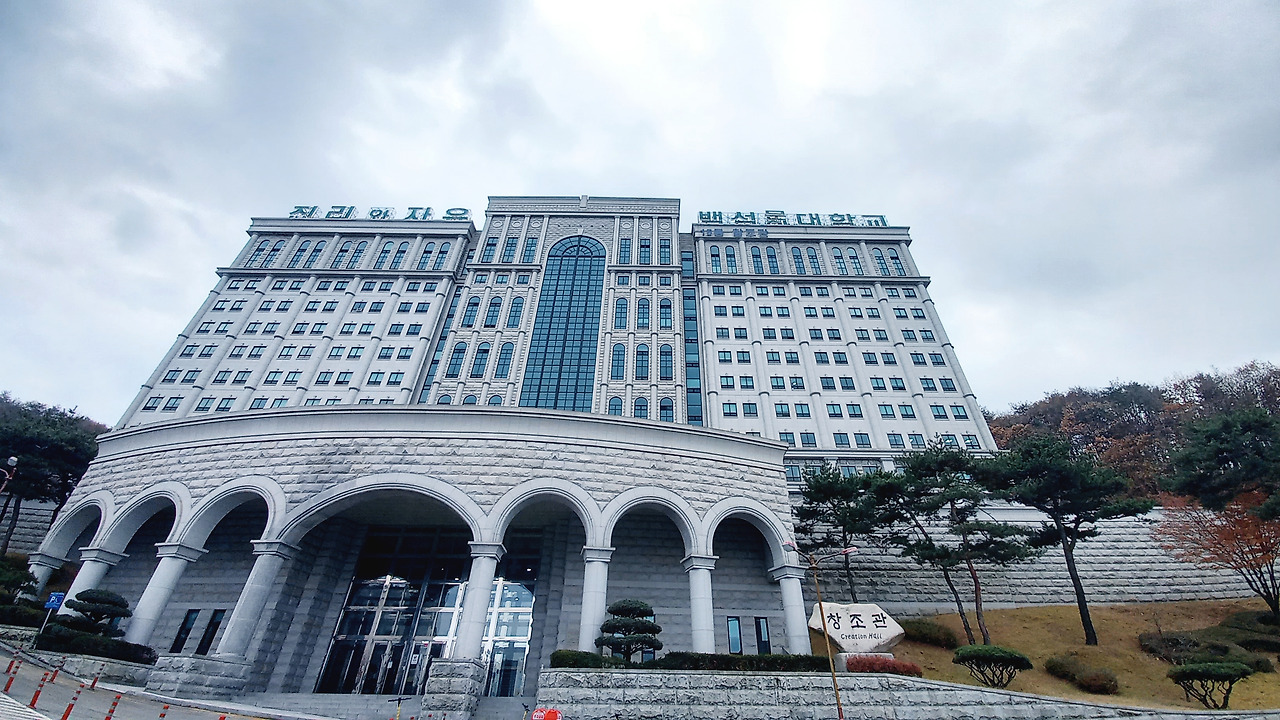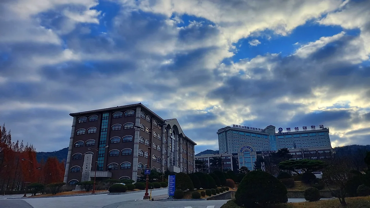 <산사 현대시 100년관>은 오전 9시에 문을 연다기에 먼저 백석대 앞 편의점에서 김밥 한 줄 사 먹고 백석대를 한 바퀴 빙 걸어본다. 나는 높은 곳으로 올라가서 내려다보는 걸 좋아해서 일단 올라간다. 가장 높은 곳은 주형관과 예술관이다. 글쎄 내 아호가 '주형'이라서 눈이 번쩍 뜨인다. 주형관 역시 '주님의 형상'이라는 뜻이리라. 참 재미나다. 처음에 아래서 볼 때는 '모험관'처럼 보였는데 올라가서 보니 '주형관'이다.