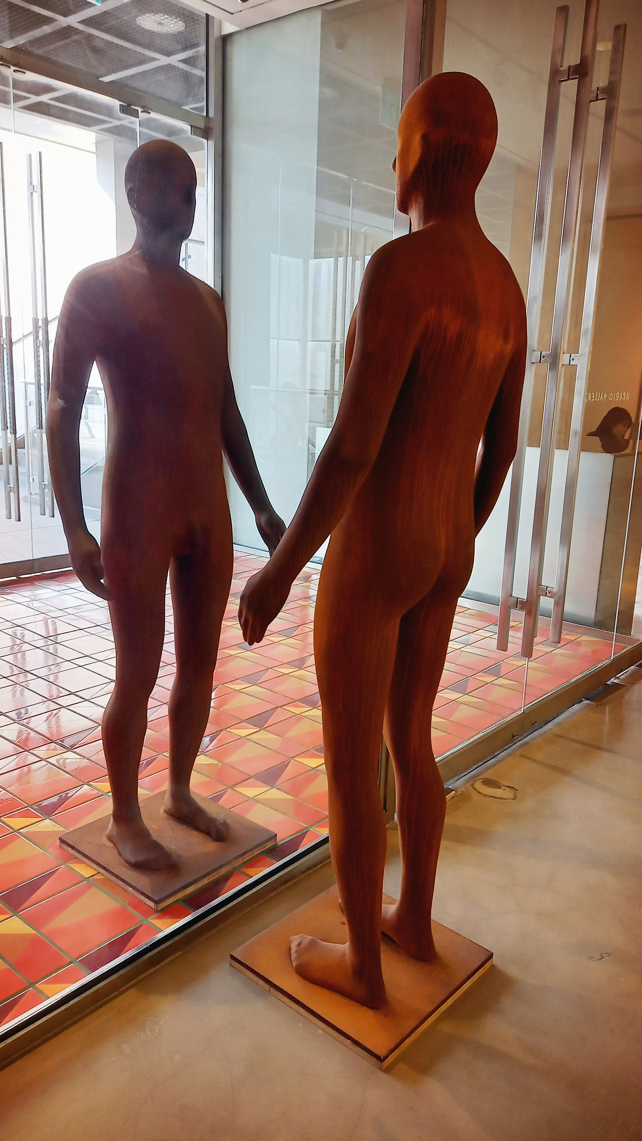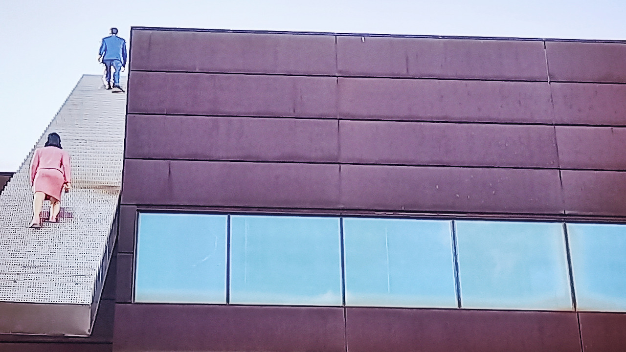 건물 지붕 위에도 남자, 여자가 지붕 위로 올라가는 조형물이 설치되어 있다. 위로 위로 성공을 향해 걸어가는 현대인을 표현한 것 같다.