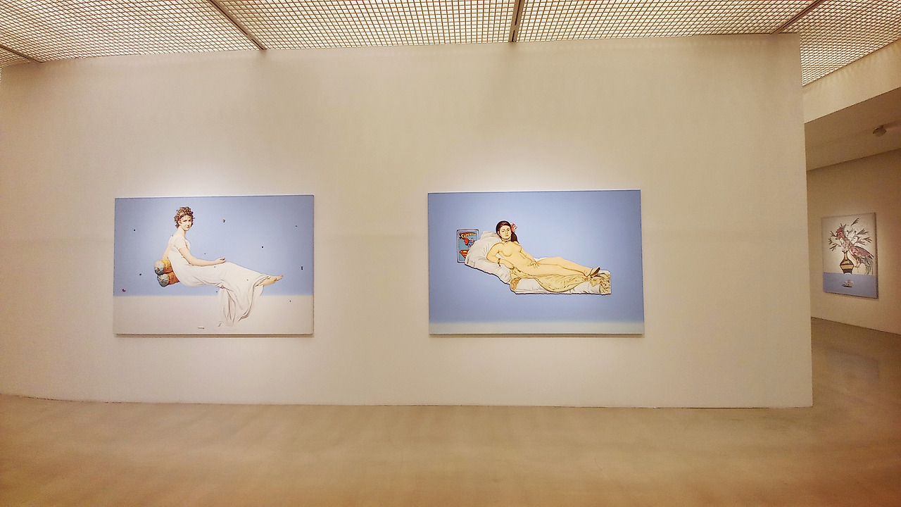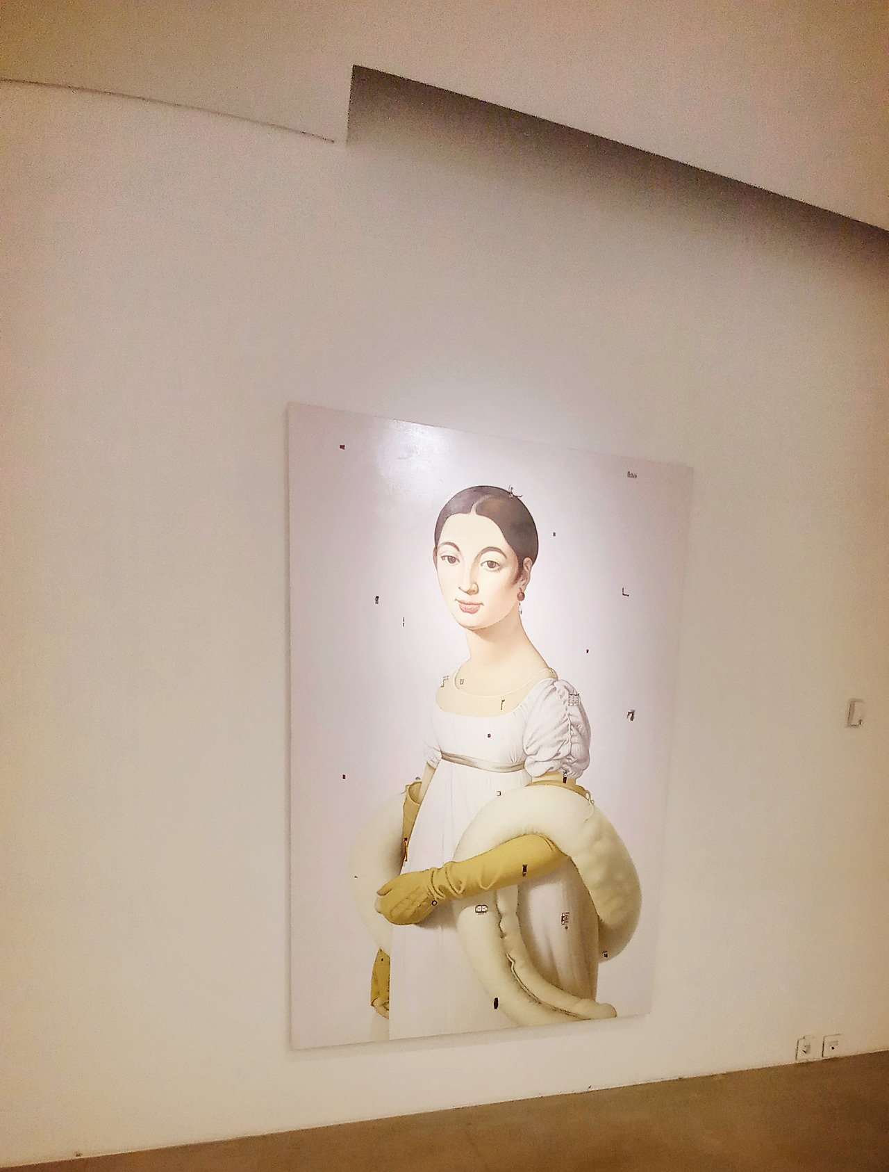 여인들의 그림에는 보석 조각들이 군데군데 박혀 있다. 대표 그림인 '흰 옷 입은 여인'은 고무장갑을 끼고 커다란 호스(태반인가?) 같은 걸 팔에 걸치고 서 있는데 여기저기 깨진 보석 조각들이 화폭에 박혀 있다. 베개를 짚고 앉아있는 여인의 그림에도 보석 조각들이 박혀 있다. 고단하고 힘든 가사노동을 하면서도 보석을 쫒는 여인들, 화려함을 추구하는 현대 여인들을 나타내는 것 같다.