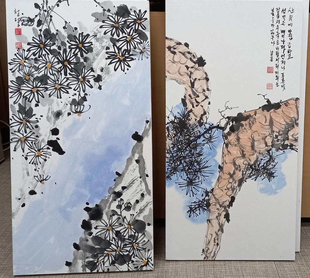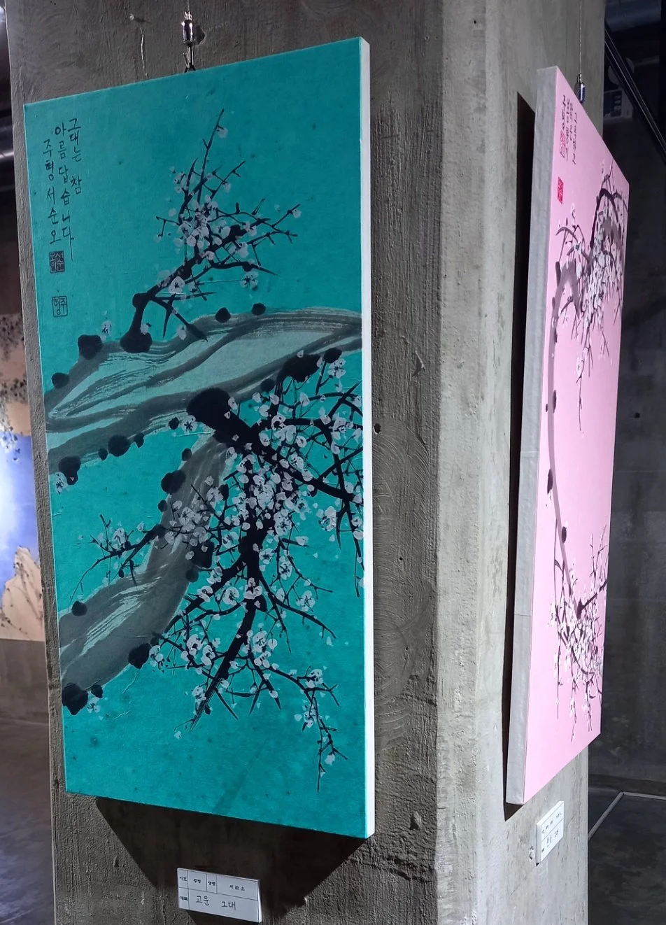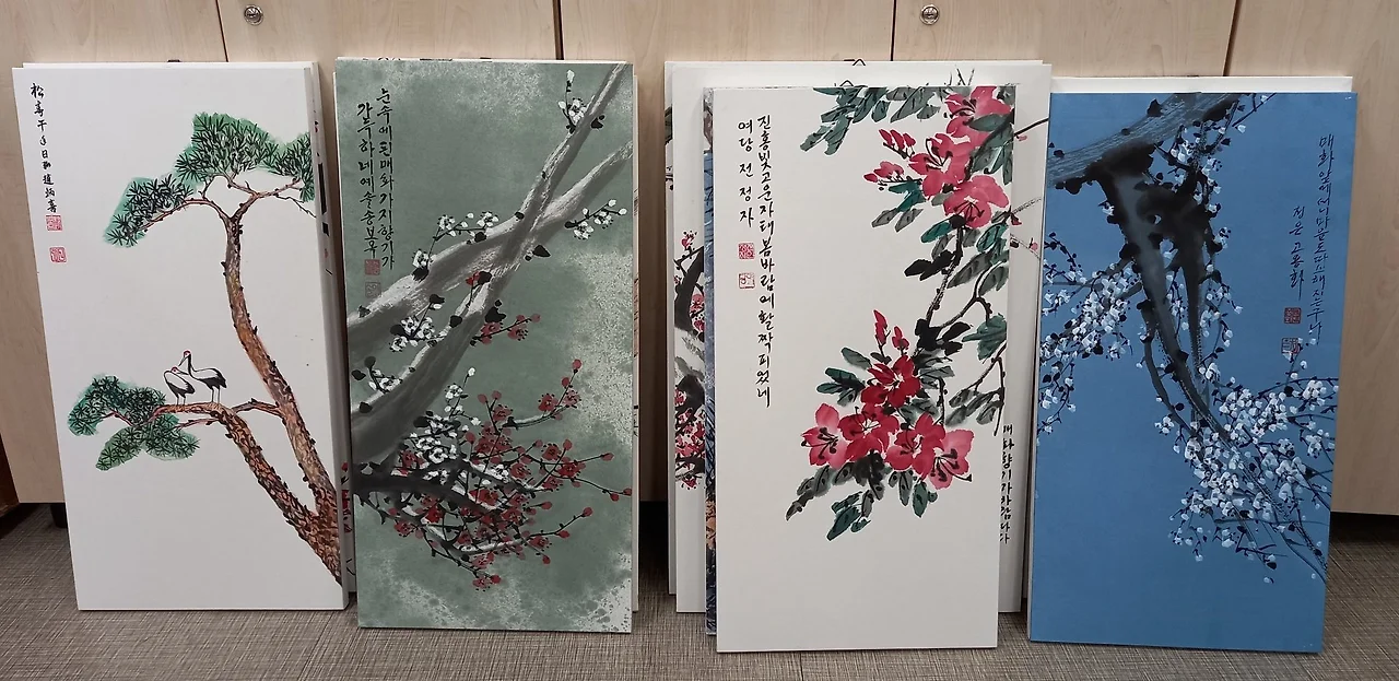 [매난국죽] 문인화 작품 80여 점을 고색뉴지엄 지하전시실에 걸었다. 100호, 족자, 판넬 작품이 골고루 조화를 이루니 참 멋스럽다.