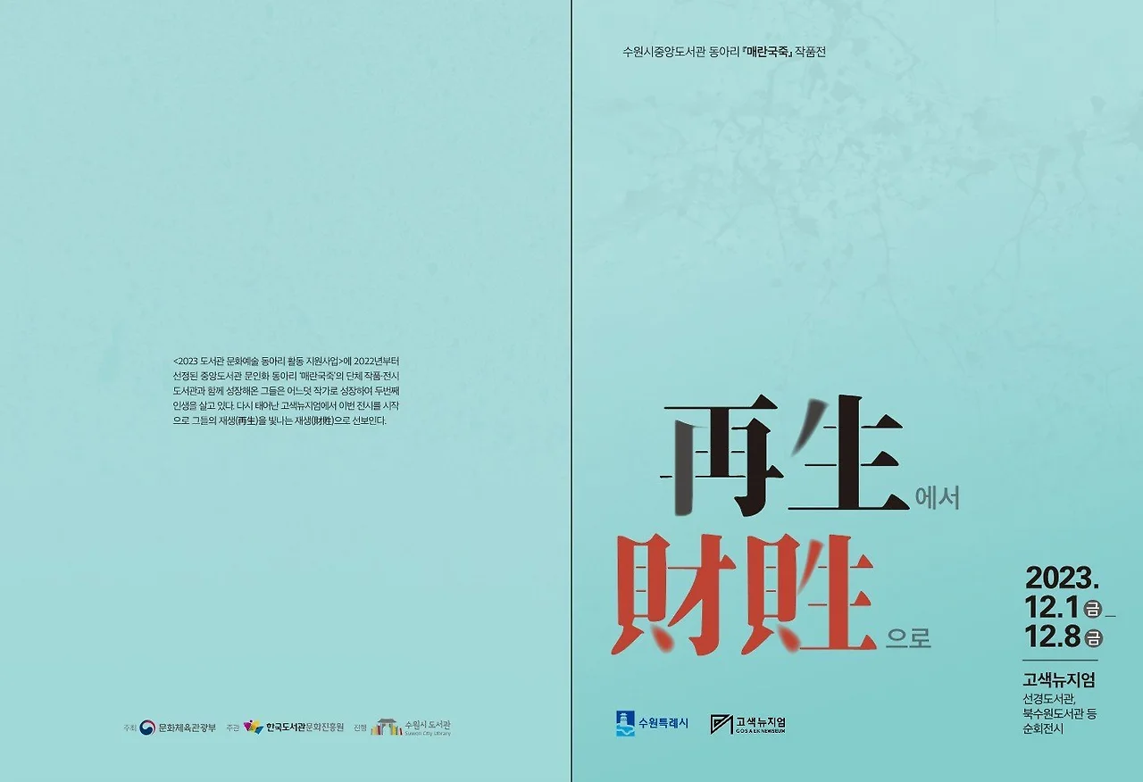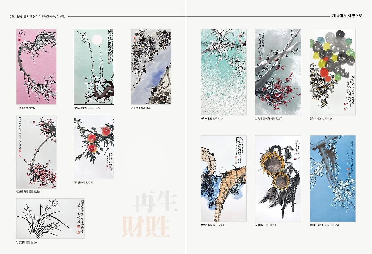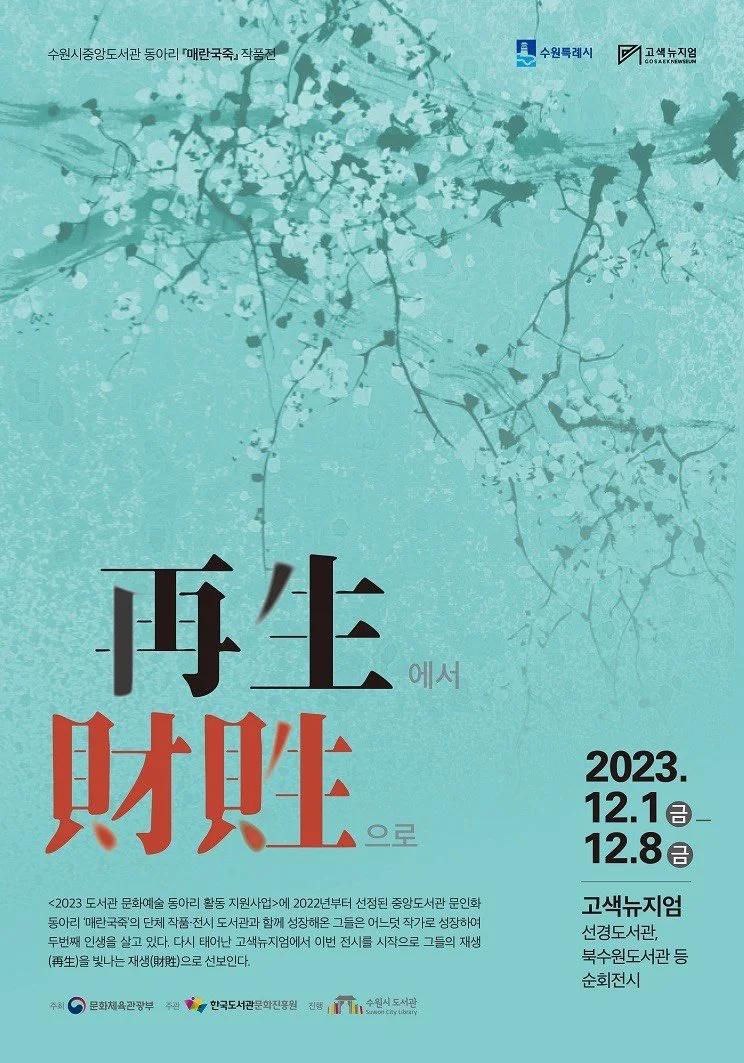 [매난국죽] 문인화 전시회 타이틀을 "재생(再生)에서 재생(財貹)으로"라고 붙인 데는 다분히 전시장이 고색뉴지엄이어서 의미를 두면 좋겠다는 기획자의 생각도 들어간 것 같다. '버려진 것들을 다시 사용한다'는 "재생(再生)"에서 '보물과 재물이 된다'는 뜻의 "재생(財貹)"으로 이름을 붙였으니 말이다.