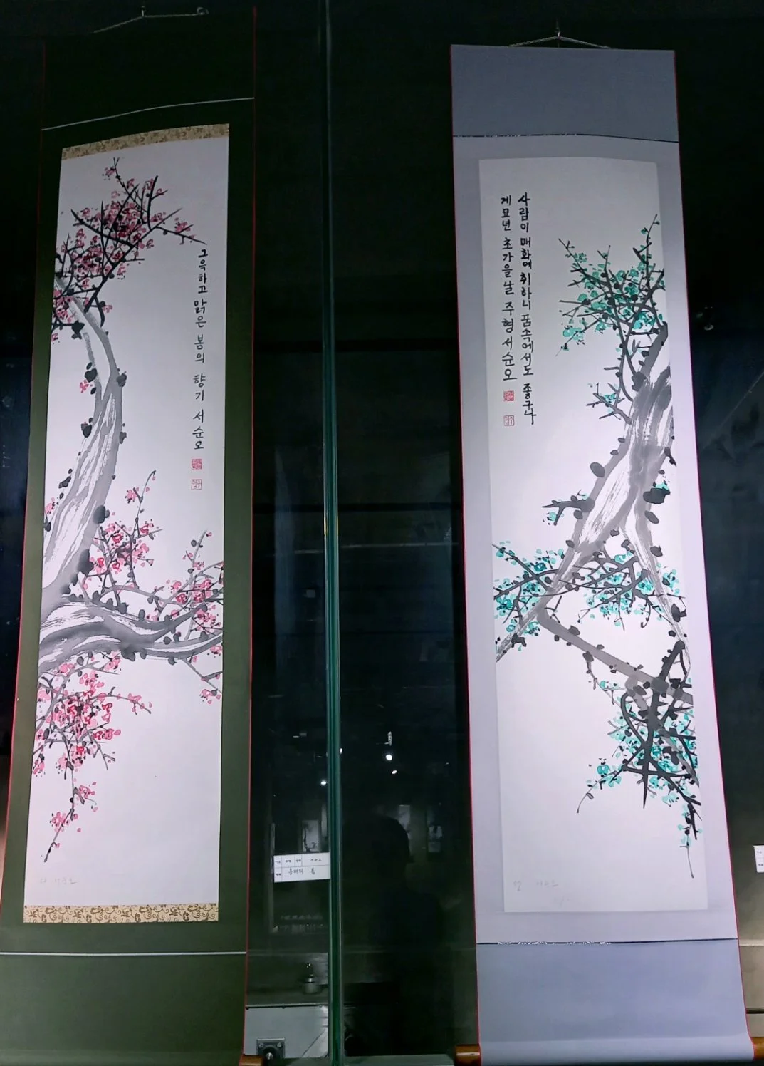 그렇지만 일단 전시장 첫 기록은 내 문인화 작품 중심으로 남겨본다. 나는 <그리움>이 내 두인이기도 해서 100호 작품은 녹매를 그리고 제목으로 달아보았다. 모든 예술의 근간이 '그리움'이 아닐까 생각하는 사람 중 하나이다. 이루지 못한 첫사랑, 꿈, 먼저 가신 이들에 대한 그리움, 추억, 가보고 싶은 곳에 대한 그리움 등 그리움의 종류도 다양하다.