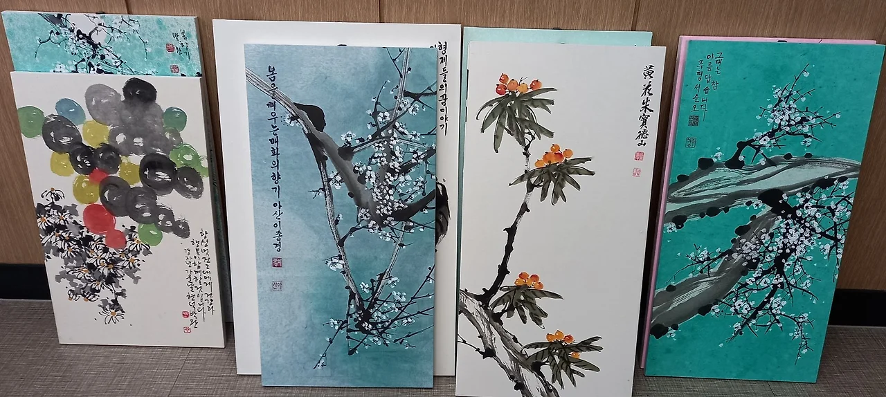 [매난국죽] 문인화가들은 거의가 다 4~5년씩 그림을 그려오고 있어서 작품 수준이 상당히 높다. 문인화뿐만 아니라 한문과 한글 글씨와 캘리그래피를 잘 쓰시는 분도 많다. 지도하시는 현덕 선생님은 대한민국 미술대전 문인화부문 초대작가 (국전)이신데 문인화 부문에서는 꽤 인정받는 분이시다. 다정다감하시고 베풀기 좋아하시고 무어 하나라도 더 가르쳐 주려고 하신다.