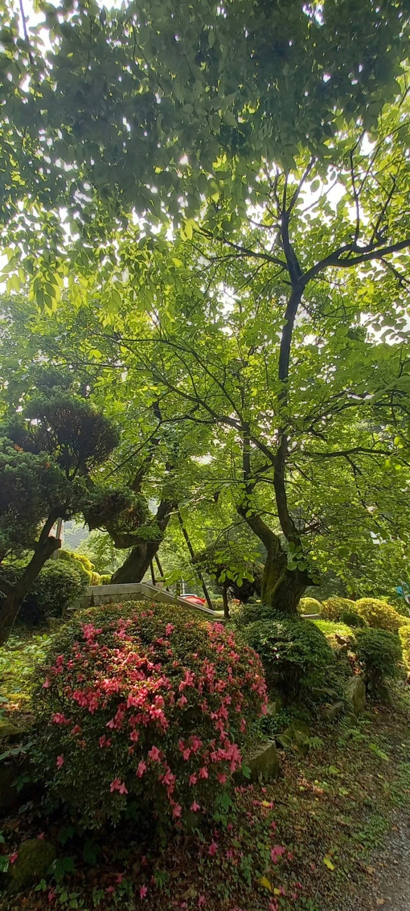 광덕산을 혼자 걸으니 정말 여유가 있다. 수령이 478년 된 느티나무, 최초의 호두나무 담고, 광덕계곡을 지나 초록 숲길로 들어선다. 비 온 뒤라 땅이 살짝 젖었는데 나무가 우거지고 바람이 시원하게 불어 아주 쾌적한 신행이다. 개망초꽃, 미나리아재비 등 이쁜 꽃들도 흐드러지게 피었다.