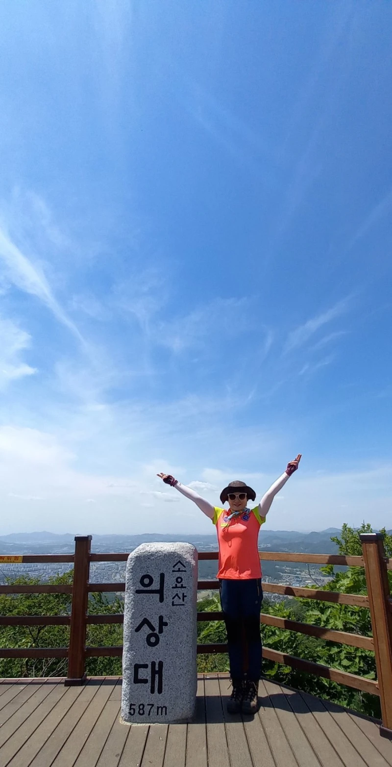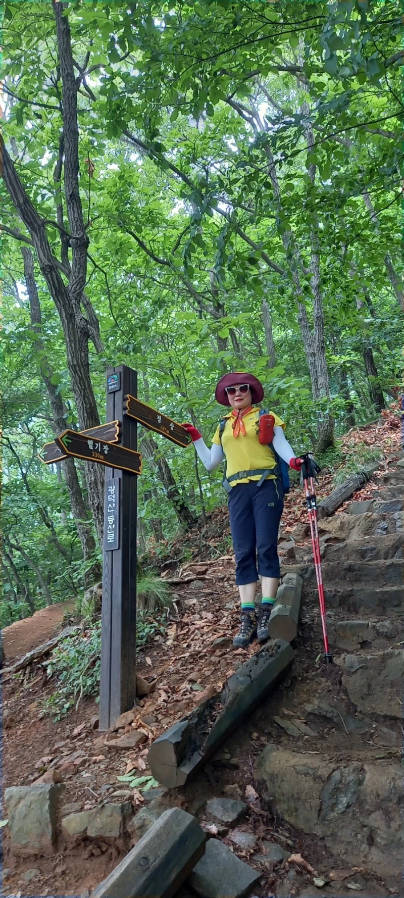 혼자 산을 오를 때는 누구라도 만나면 사진 부탁을 한다. 젊은 여산우님이 예쁘게 담아준다. 고맙다. 사진 찍는 시간은 잠시 숨을 고르고 쉬는 시간이기도 하다.