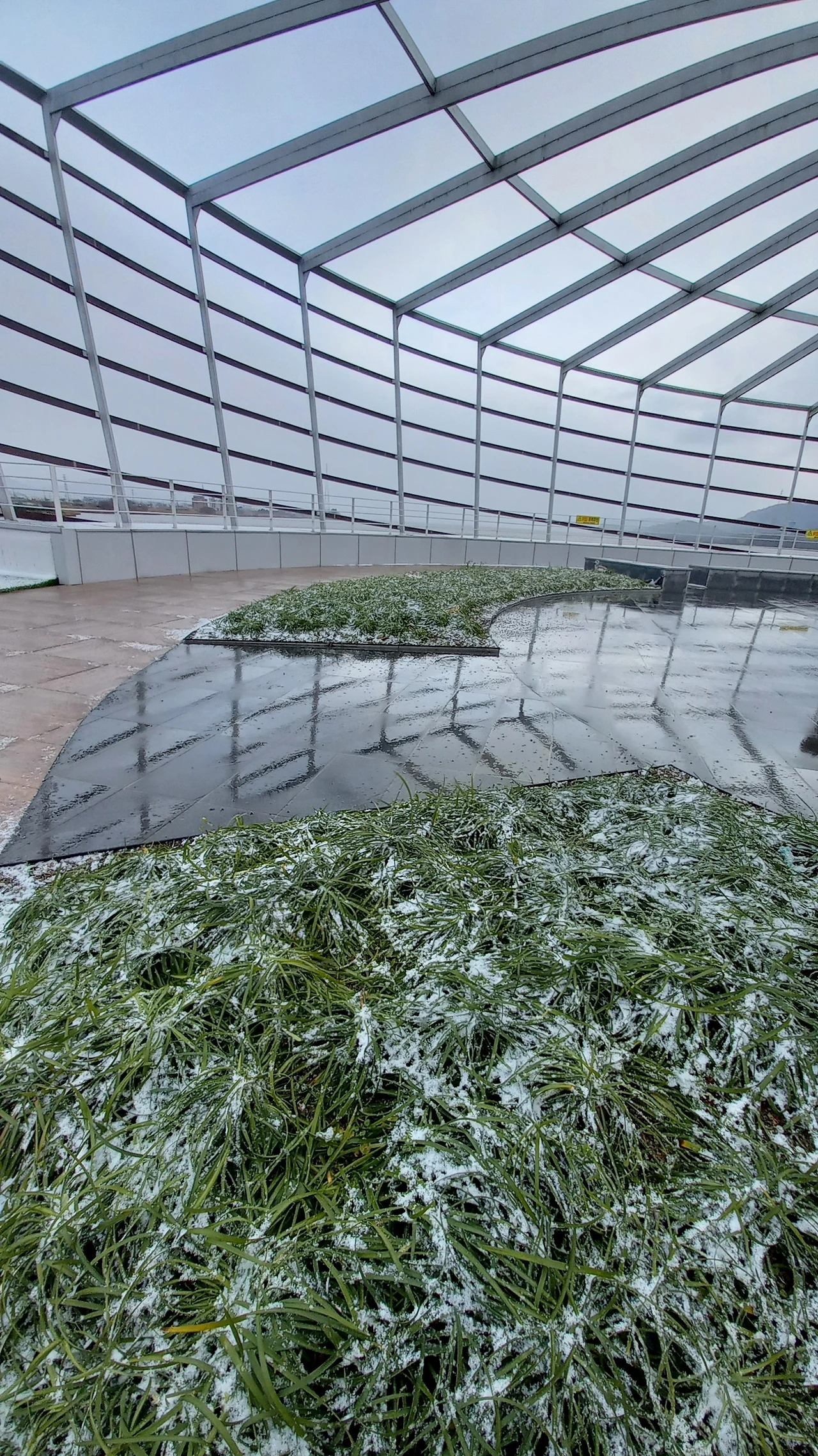신갈에서 버스 탑승하려고 기다리는데 눈이 내린다. 꽤나 많이 내려서 눈이 조금 쌓일 것도 같다. 버스를 타고 가는 동안에도 눈이 제법 내린다. 정안알밤휴게소에서 쉬어기는데 야외테이블과 의자에 눈이 얇게 쌓였다.