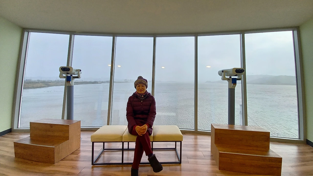 오전 9시 50분 서천조류생태전시관에 도착한다. 전시관 문은 10시에 연다는데 미리 들어갈 수는 있어서 먼저 옥상으로 올라간다. 초록 풀 위에 히얀 눈이 소복히 쌓였다. 망원경으로 바라보니 금강에서철새들이 모여서 노닐고 있다. 올들어 처음 맞는 눈이라 마음은 싱그러운데 매서운 추위와 바람에 자꾸만 몸이 움츠러든다. 털모자를 쓰고 귀를 가리고, 장갑을 끼고 호주머니에 손을 넣어도 시리기만 하다. 그런데 새들은 참 한가로운 풍경을 안겨준다.