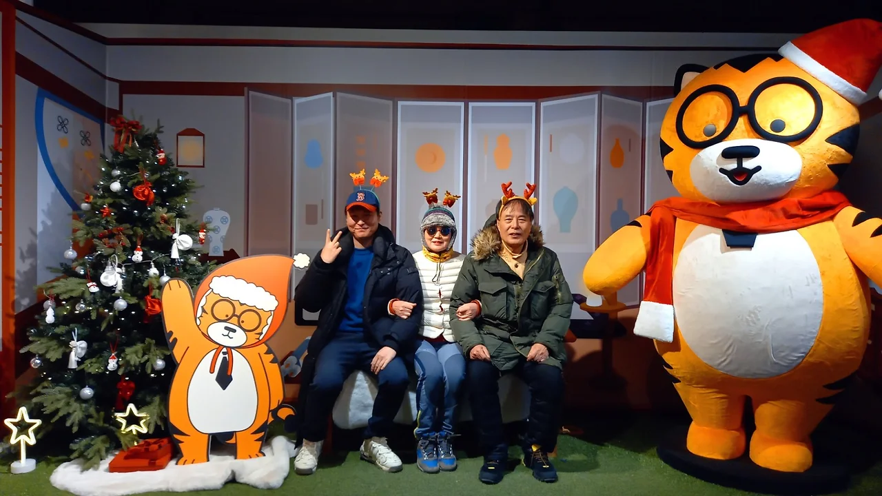 오후 되니까 날이 많이 풀려서 나는 가볍게 입고 다니니까 딱 좋다. 울 남편은 전시품 보는 걸 좋아해서 산타 포토존에서 가족사진 한 장 찍고는 떨어뜨려놓는다. 아들이랑 둘이서 한옥마을 거리를 천천히 한가롭게 거닐어본다.