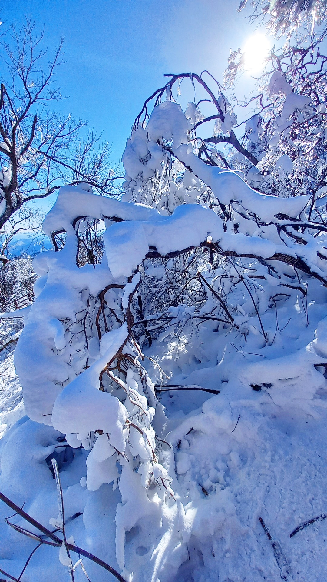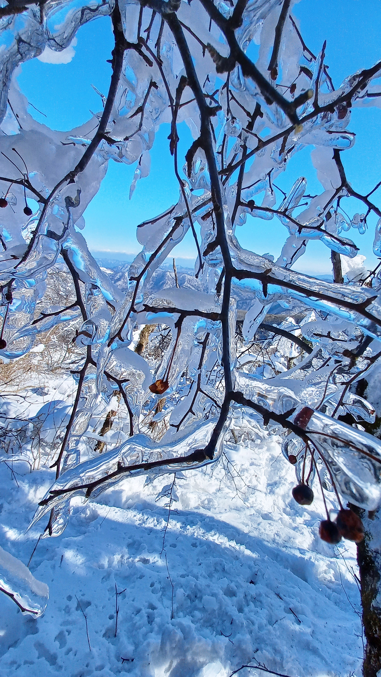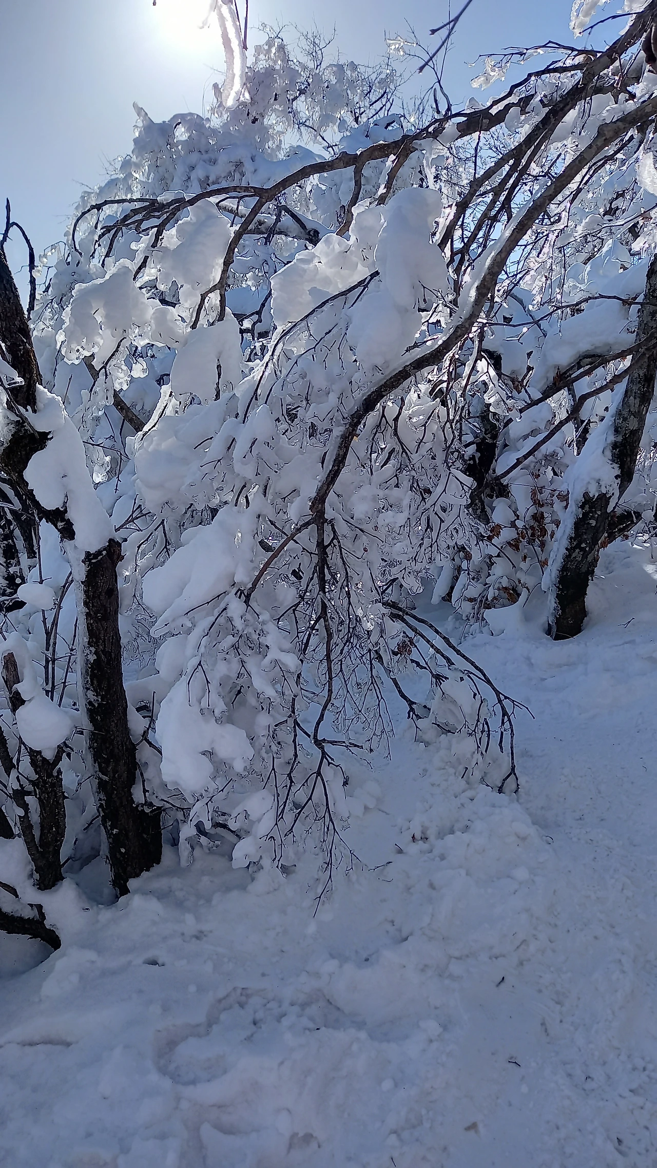 발왕산 눈꽃은 이런 여러 가지가 혼합된 눈꽃이다. 햇빛을 받아 반짝반짝 빛나는 눈꽃이 장관이다. 핸드폰 카메라로는 잘 안 담겨서 조금 아쉽다.