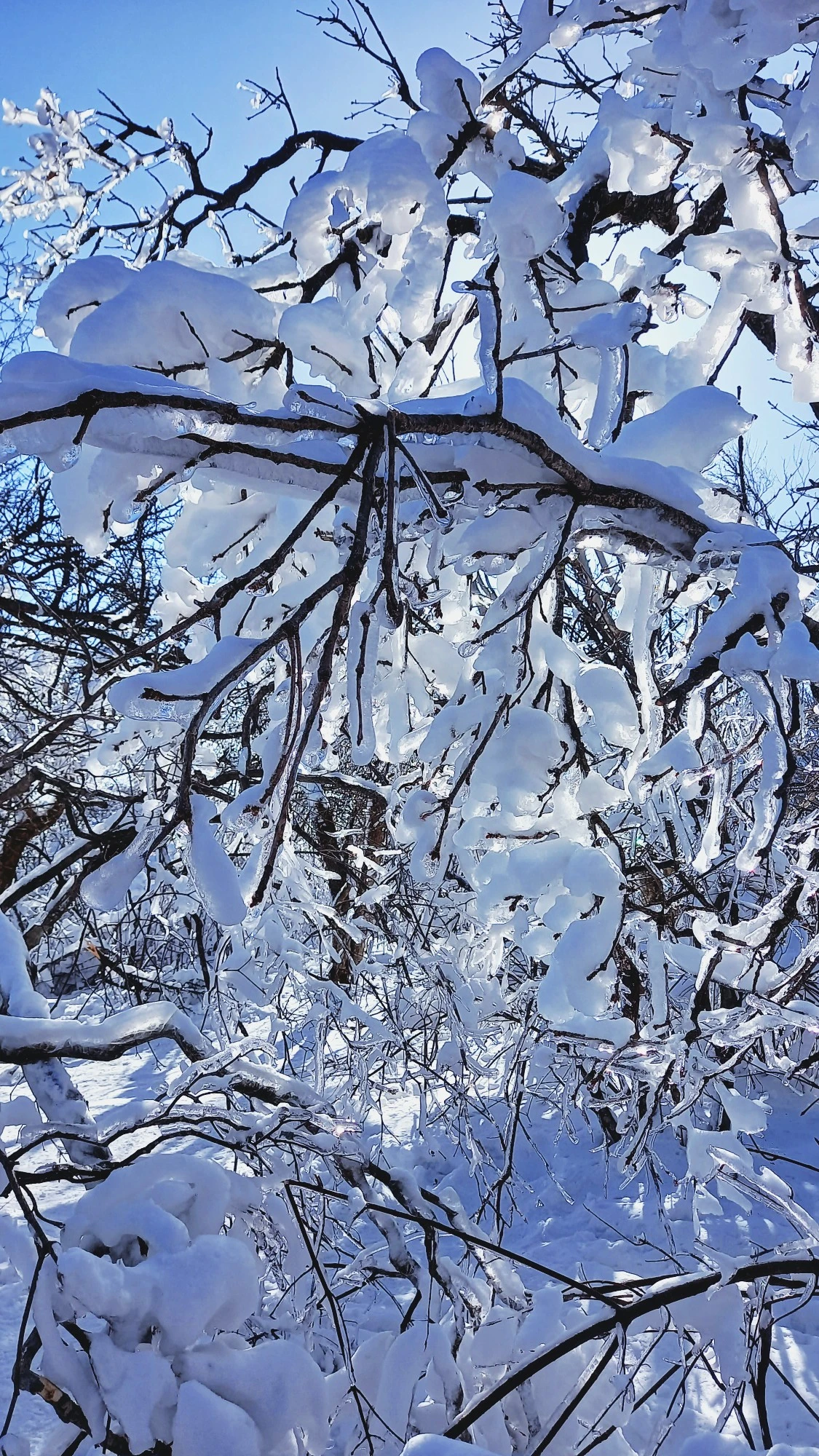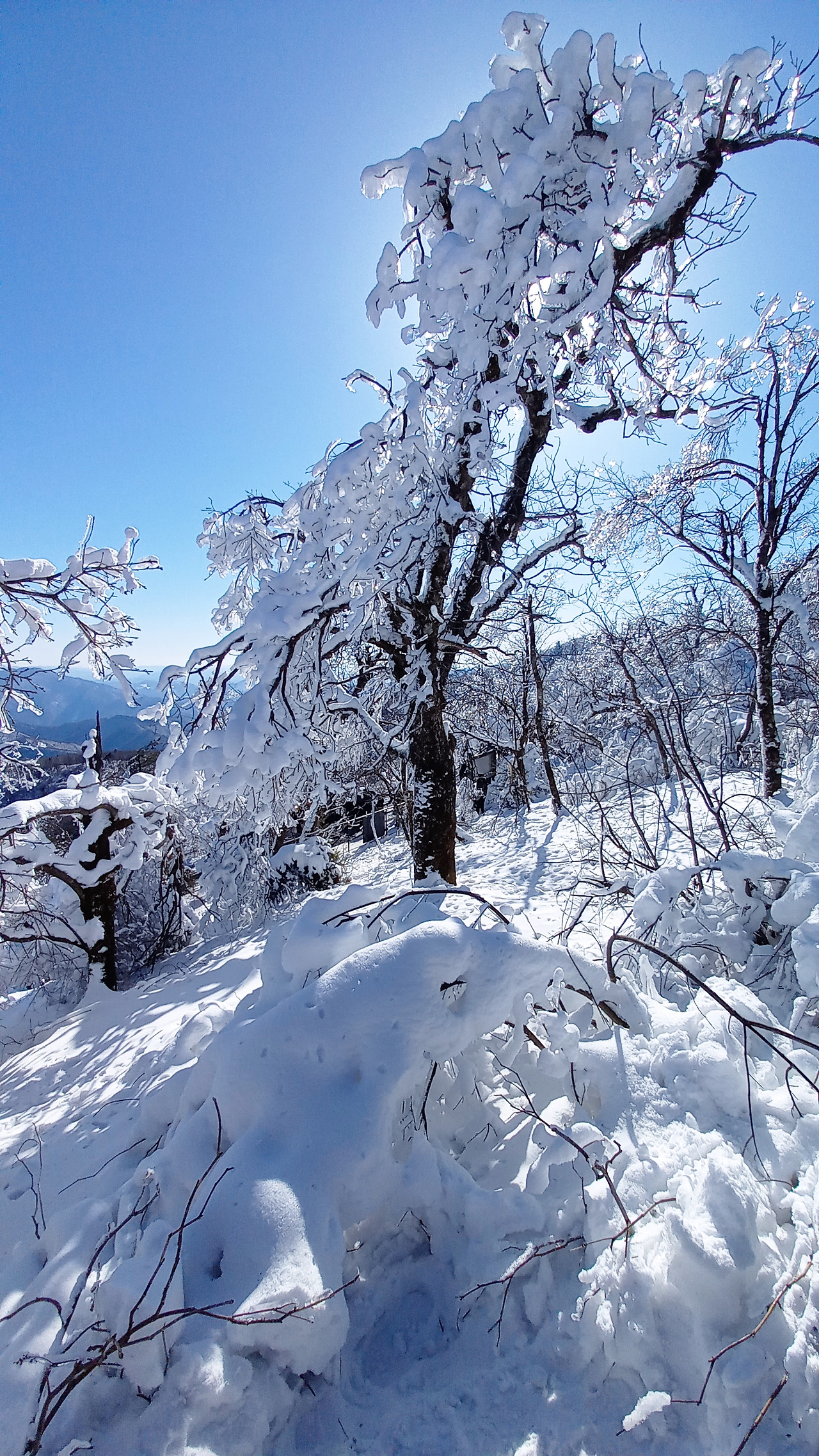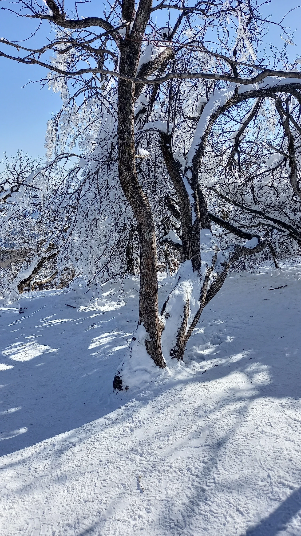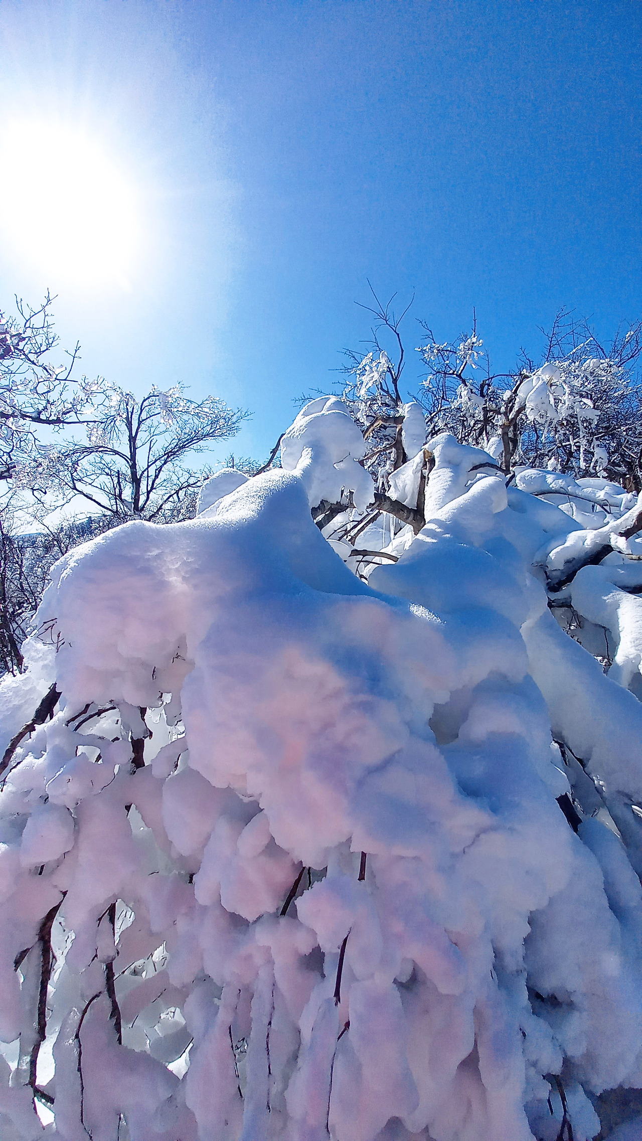 발왕산 눈꽃은 이런 여러 가지가 혼합된 눈꽃이다. 햇빛을 받아 반짝반짝 빛나는 눈꽃이 장관이다. 핸드폰 카메라로는 잘 안 담겨서 조금 아쉽다.