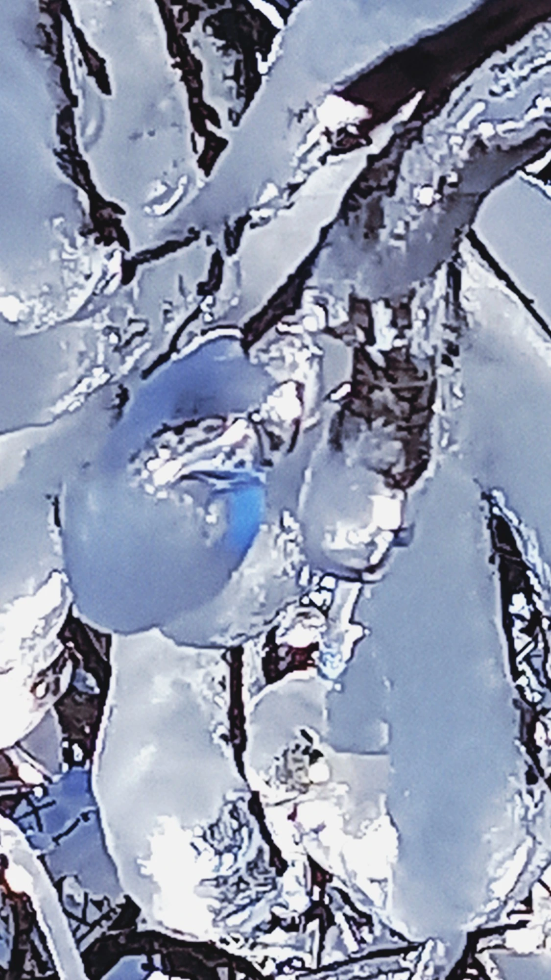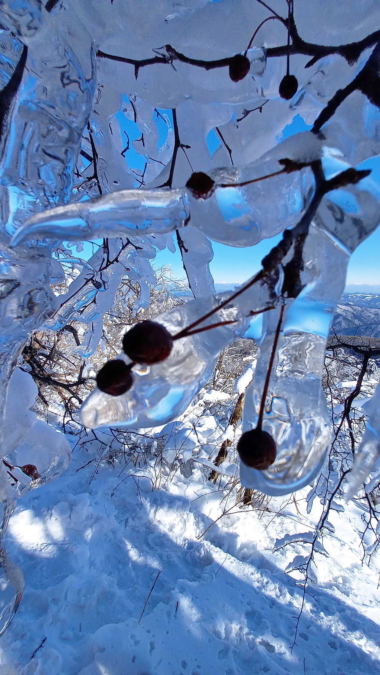 얼음꽃 사진을 정성스레 찍는 분이 있다. 나도 옆에서 빛이 얼음꽃에 비쳐 반짝반짝 빛나는 모습을 담아보려고 애를 쓴다. 그런데 잘 안 된다.수정같이 맑은 얼음꽃 안에 열매들도 담아본다. 보석이 따로 없다. 그대로 이어 붙이면 '빙화실석(얼음꽃열매석)'인데, 다른 이름은 없을까? 골똘히 아이디어를 짜내본다. 영어로 '워터푸룻플라워'는 어떨까?