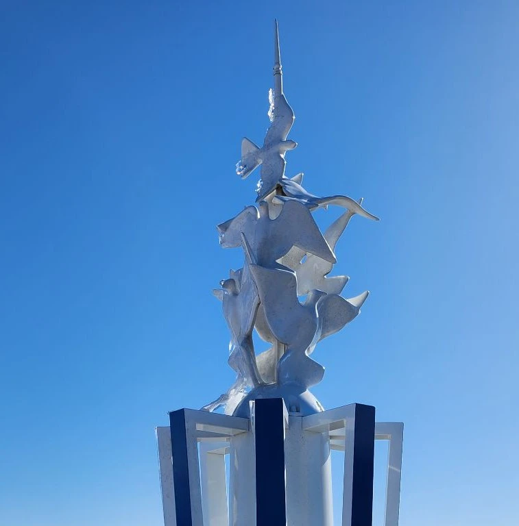 애니메이션 영화 <겨울왕국>의 한 장면이 떠오른다. 저 얼음꽃길을 날아서 파란 하늘문으로 들어가면 그곳에 새로운 왕국이 열릴 것만 같다.