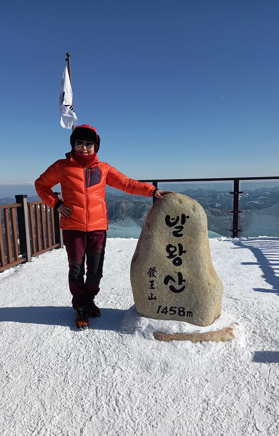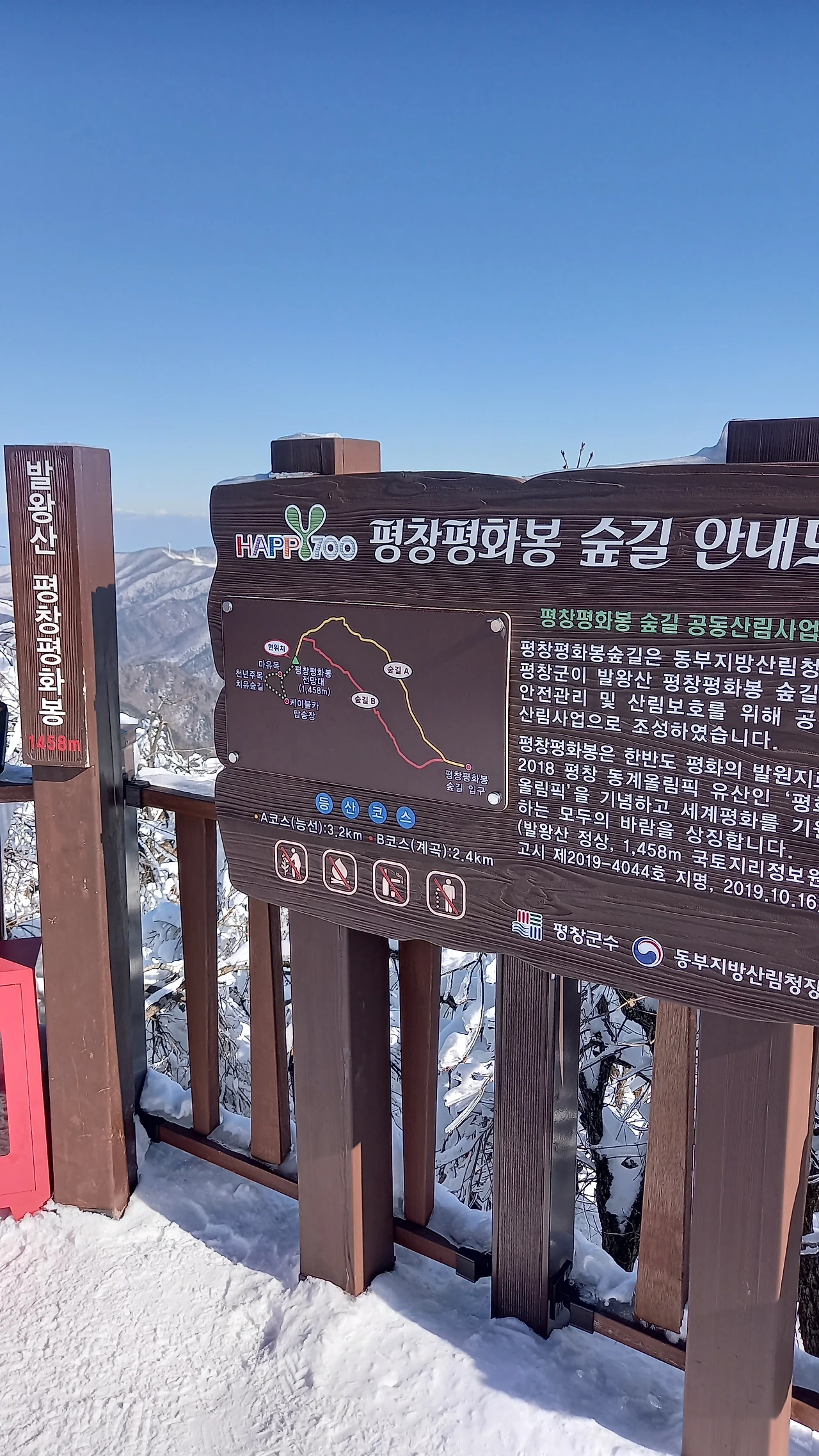 발왕산 정상 평화봉에서 100+ 명산 35번째 인증숏 찍는다.