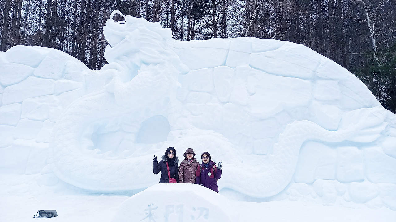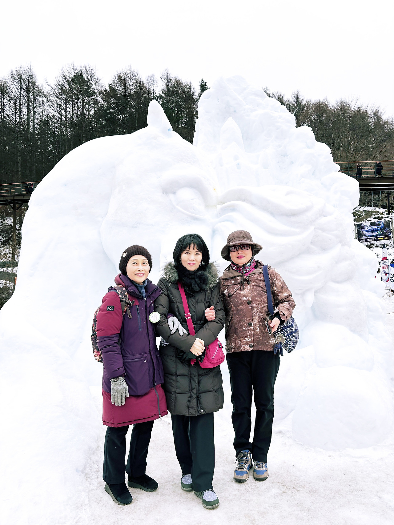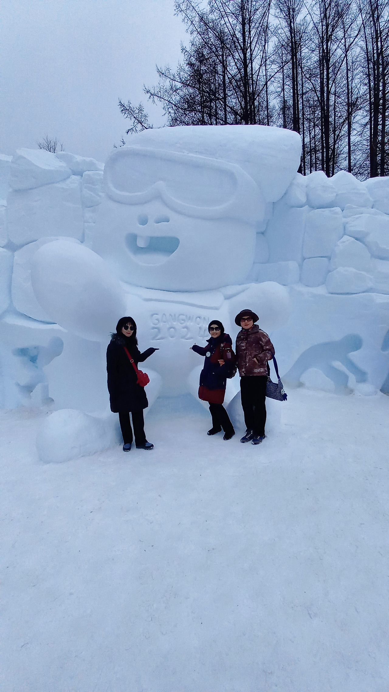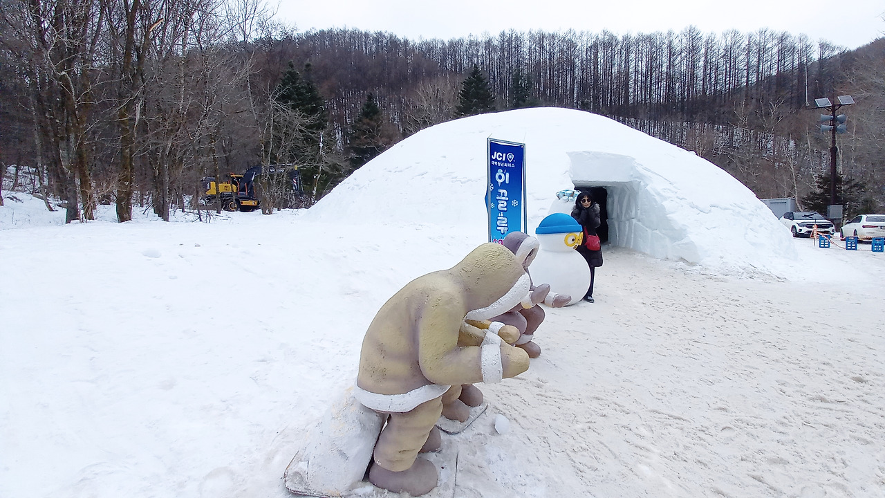 강원 2024 눈조각품에는 사람이 들어갈 만한 장소가 있다. 그 속에 차례로 들어가 사진을 찍는다. 엉덩이가 차갑다. 울 친구들 셋이 모두 들어가 찍으면 인생샷 작품 하나 건지겠는데 사람들이 지나다녀서 그럴 수가 없다. 그래도 한 사람씩 들어가 찍으니 재미나다.