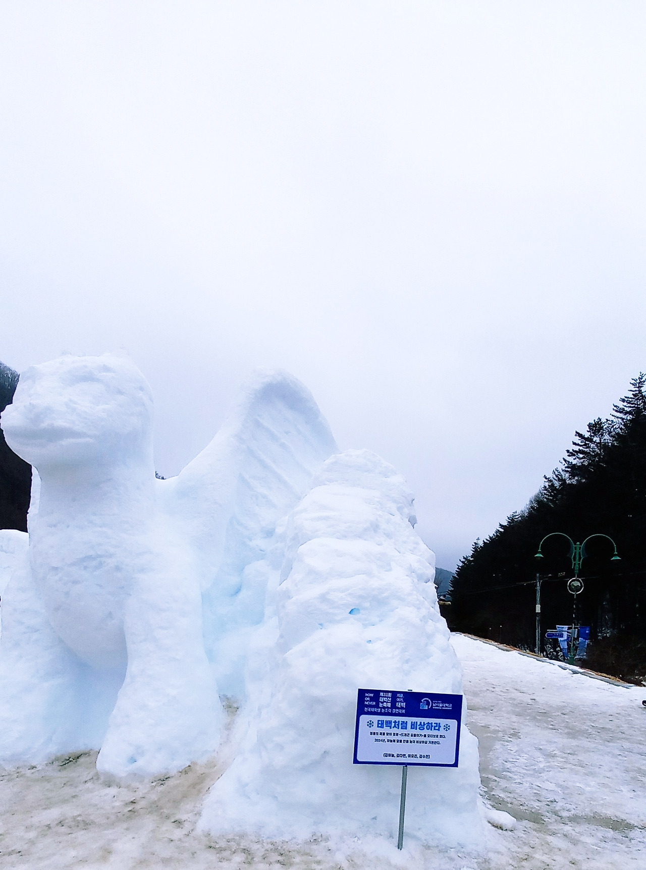 가는 도중 태백산 하늘전망대가 나온다. 그 아래쪽에 태백산 눈축제 조각이 있어서 돌아본다.
