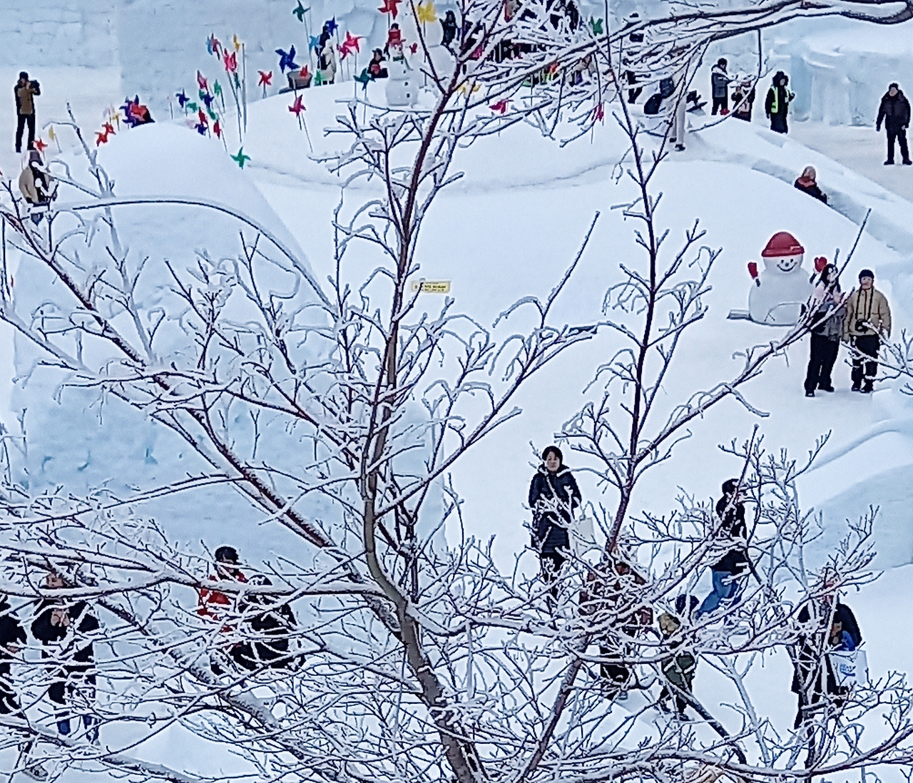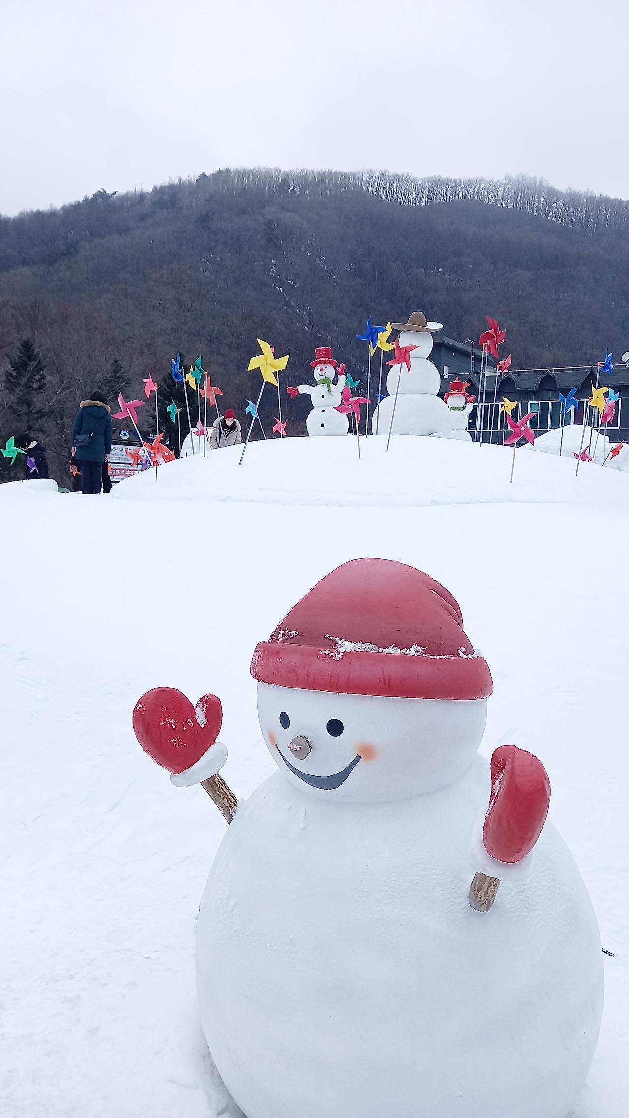 조금 더 오르니 본격적인 태백산 눈축제장이다. 날씨가 포근해서 길이 미끄럽지 않아 좋다. 사람도 그리 많지 않다. 지난주에는 사람 반, 눈 반이라고 엄청 붐볐다는데, 울 친구들 시간이 오늘밖에 안 된다고 해서 일정을 맞춘 건데 결과적으로는 더 잘된 것이다.