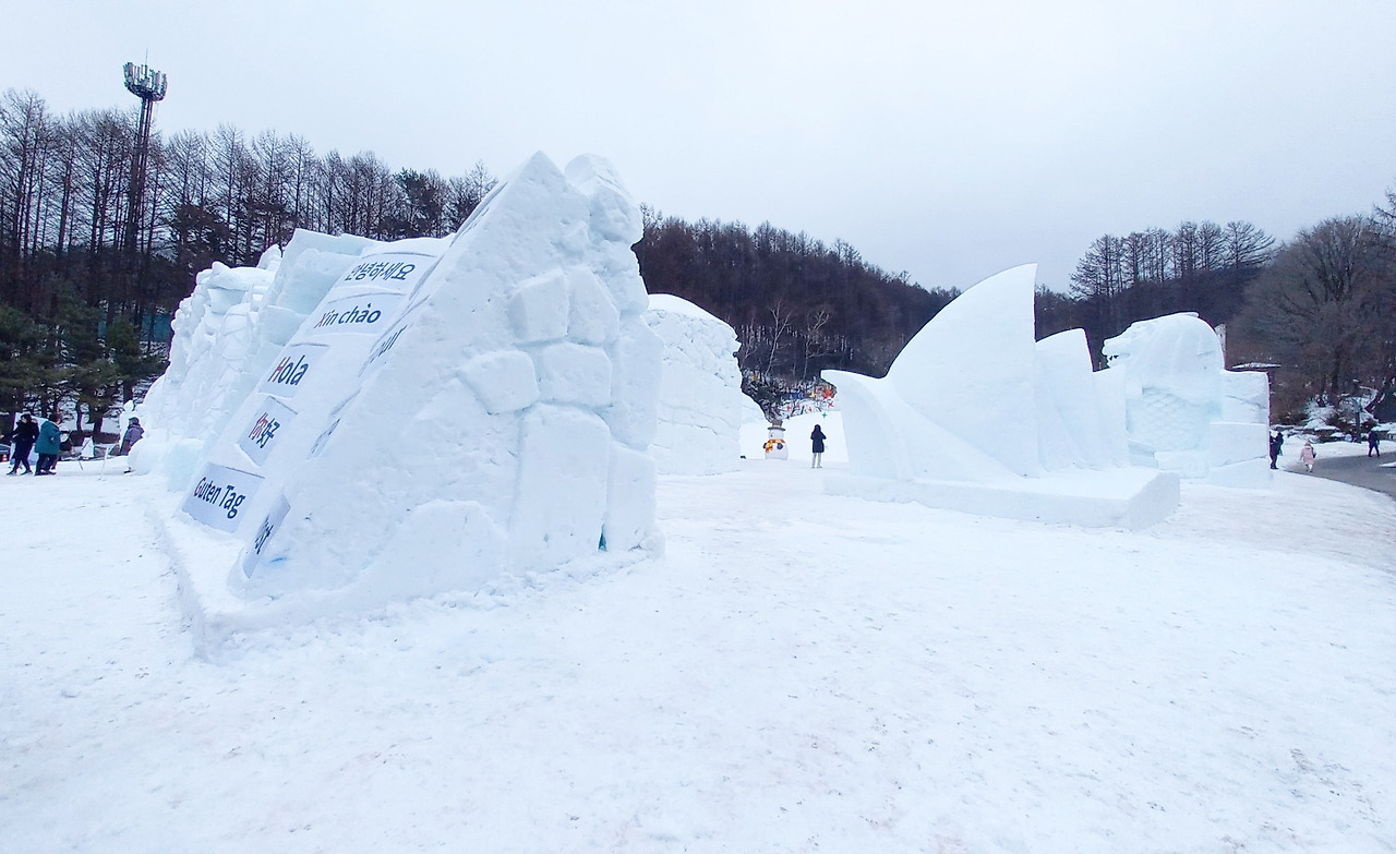 태백산 눈축제는 이전에 태백산 산행 후에 한번 돌아보았는데 오늘만큼 시간이 여유롭지는 않아 자세히는 못 봤다. 그런데 눈축제만 따로 오니 나름 좋다. 구석구석 다 돌아본다. 아래쪽, 중간 쪽, 위쪽 눈 조각품들까지 빠짐없이 볼 수가 있다.