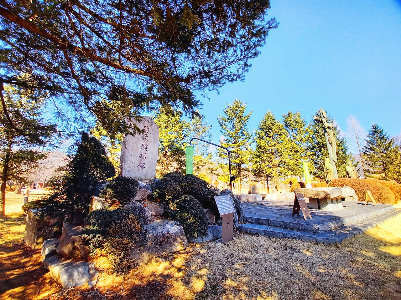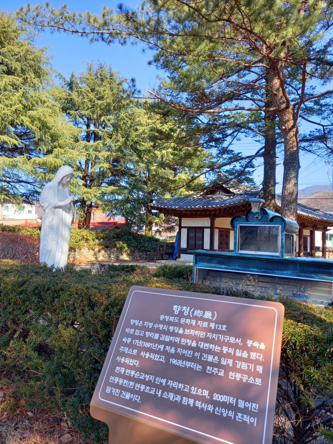 연풍성지는 향청이 있던 자리에 세워졌단다. 천주교박해를 피해 다니던 산앙인들이 연풍에서 순교하게 된 일을 기리는 성지이다. 예수님의 십자가상, 순교자들의 무덤과 동상, 순교현장비와 교수형 형구틀도 세워져 있어서 그 끔찍했던 장면들을 짚어본다. 오래된 나무들도 많다. 이곳의 나무들은 그 순교의 현장을 묵묵히 지켜보았을 것이다.